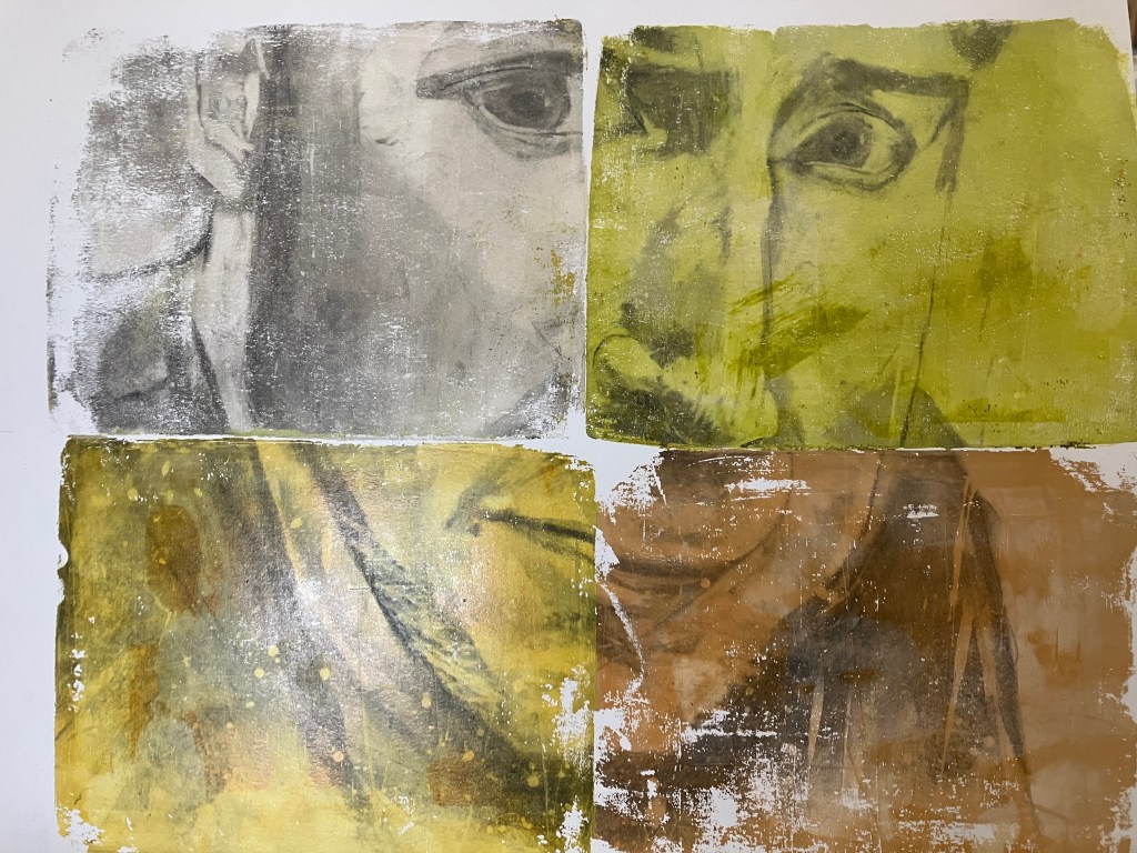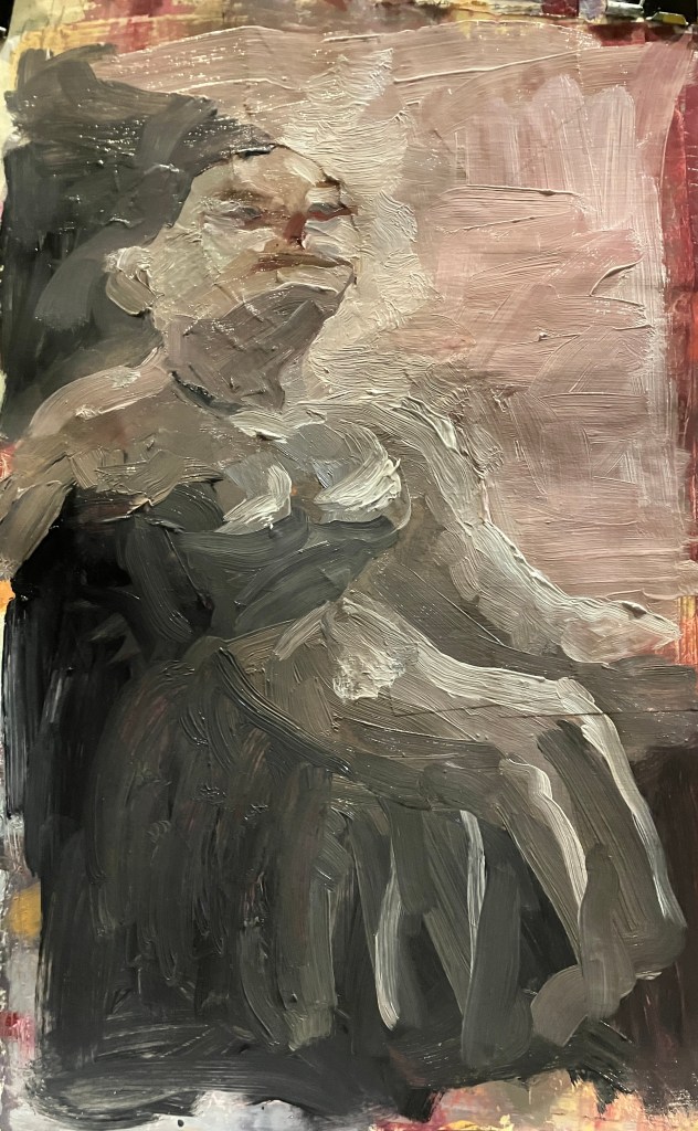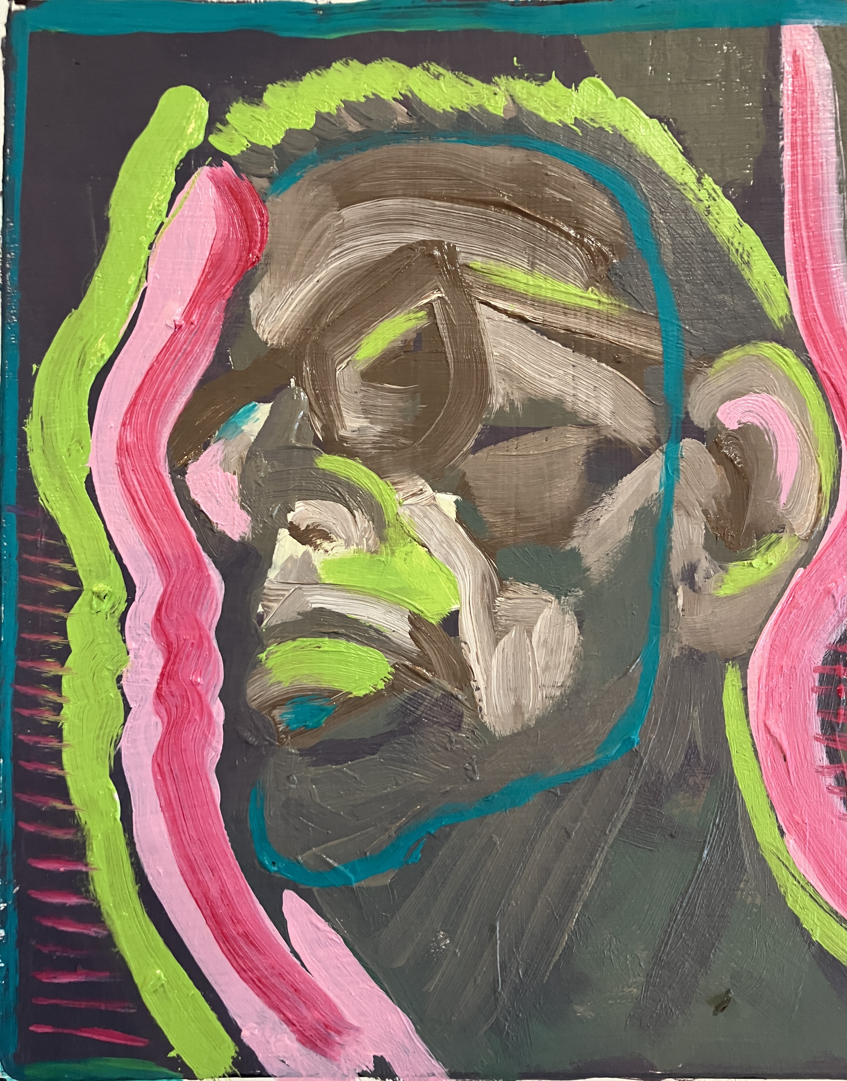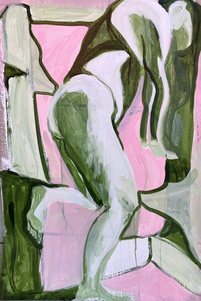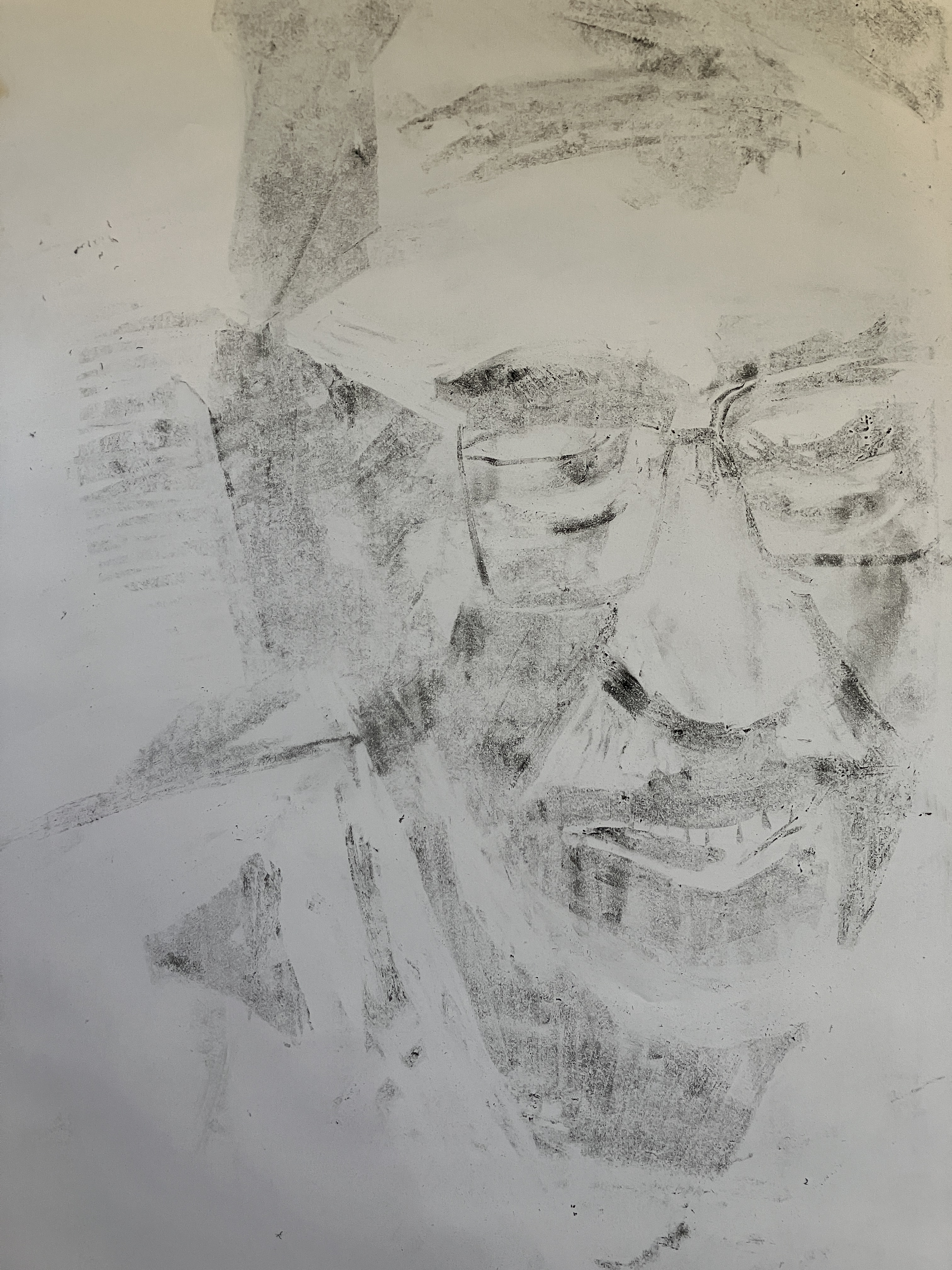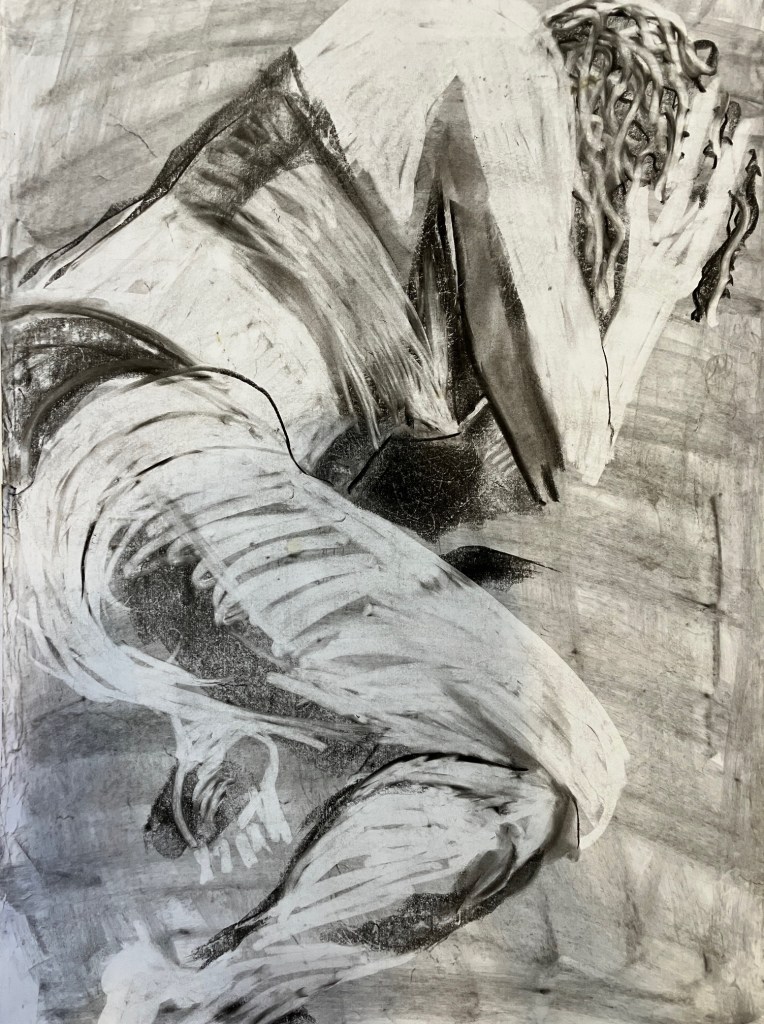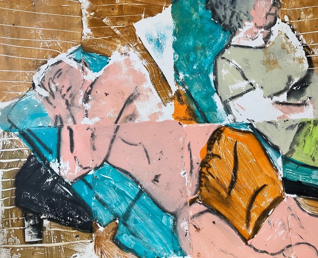 Compressed #2. Before (left, 12/2022). After (right, 11/2023) Oil, 18.5×21″