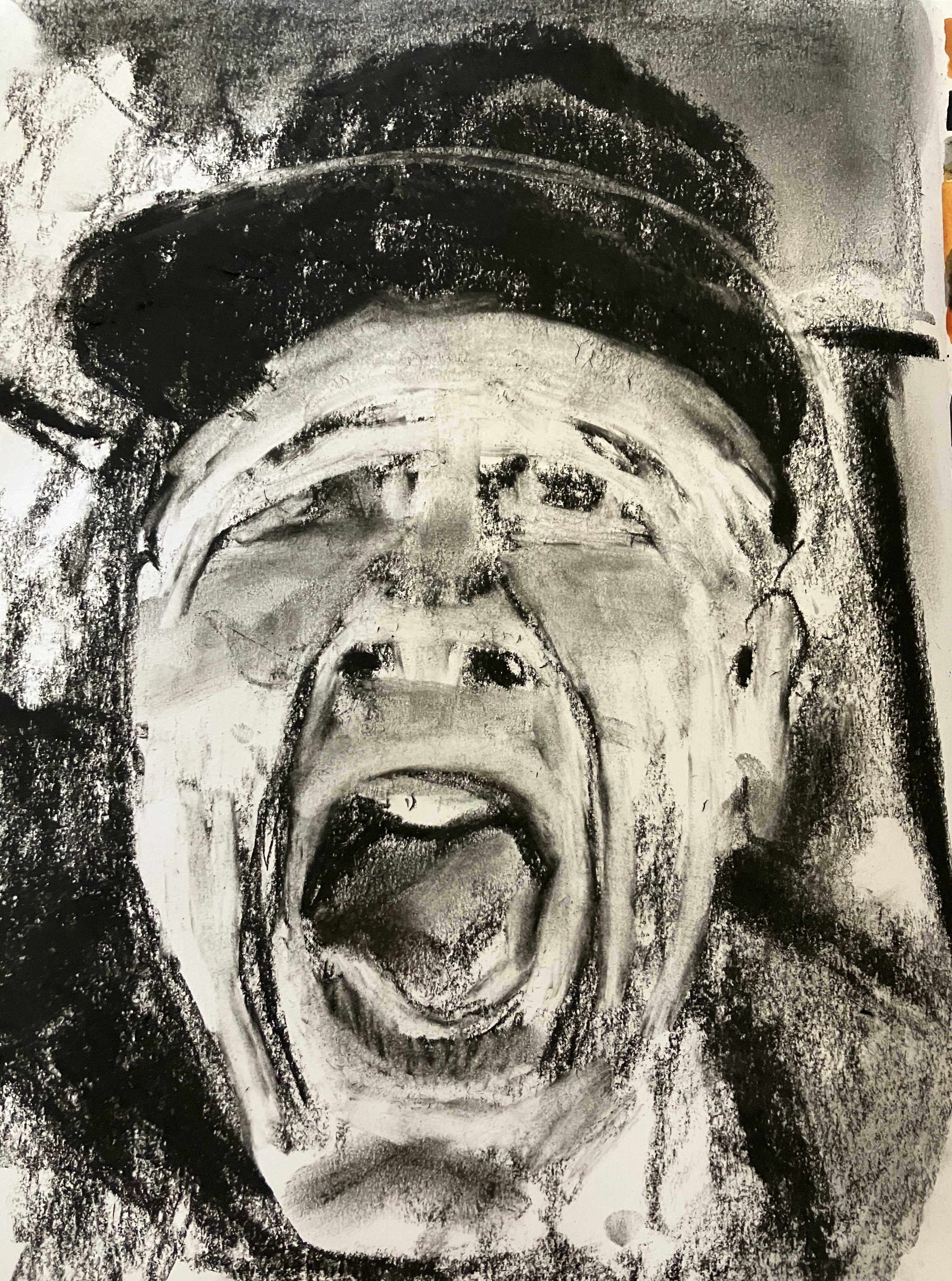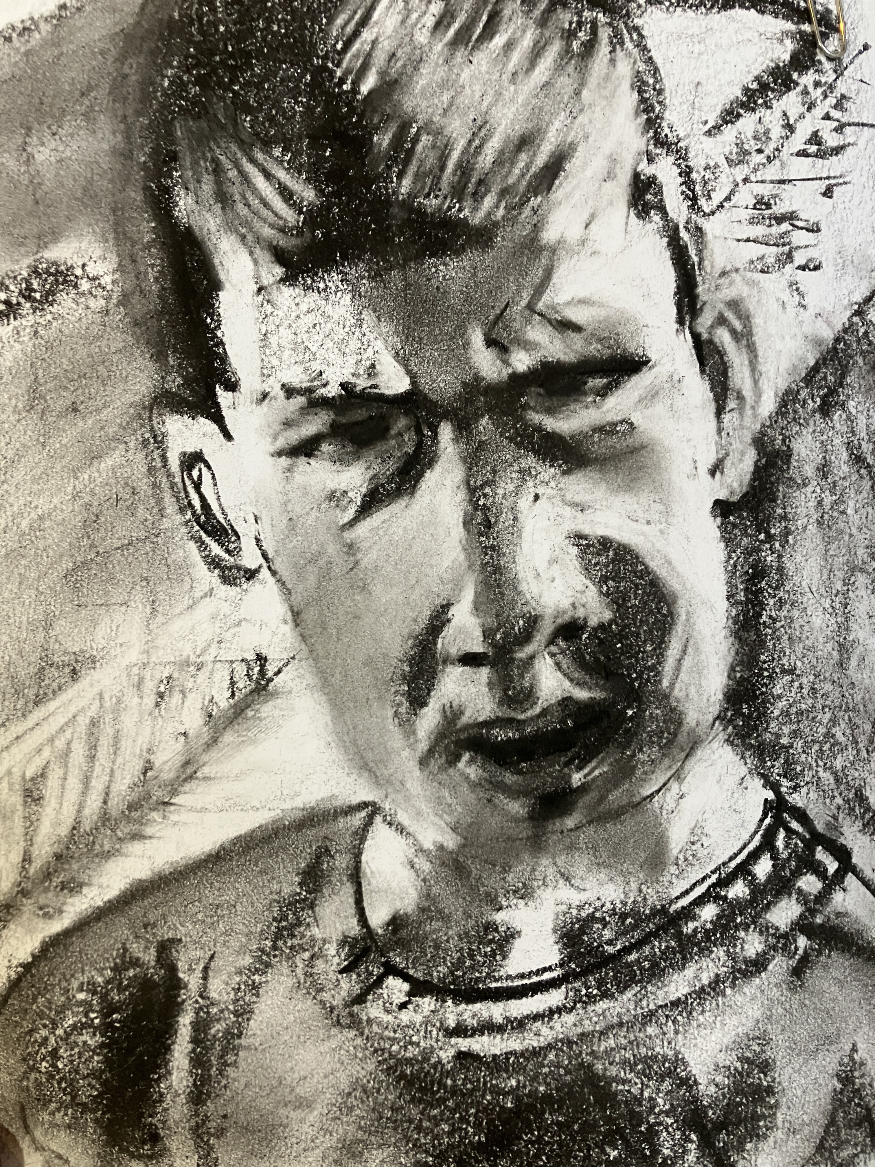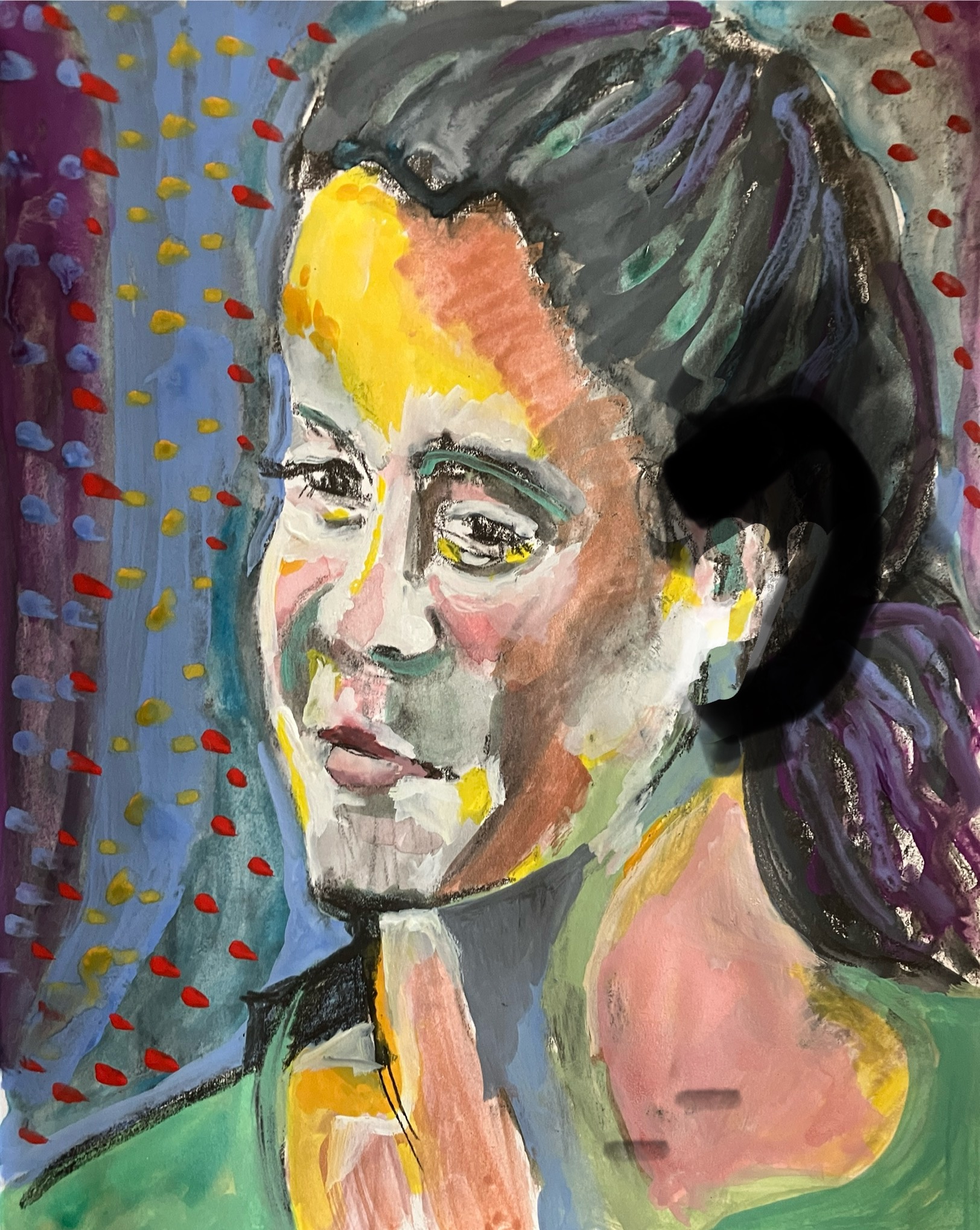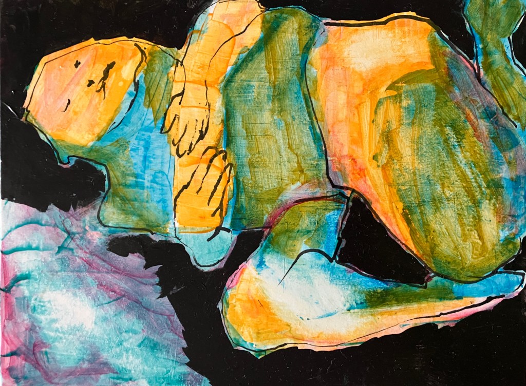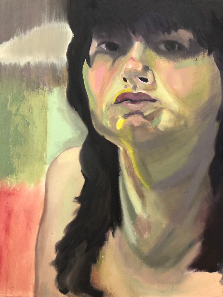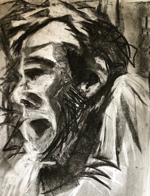 Compressed #2. Before (left, 12/2022). After (right, 11/2023) Oil, 18.5×21″
