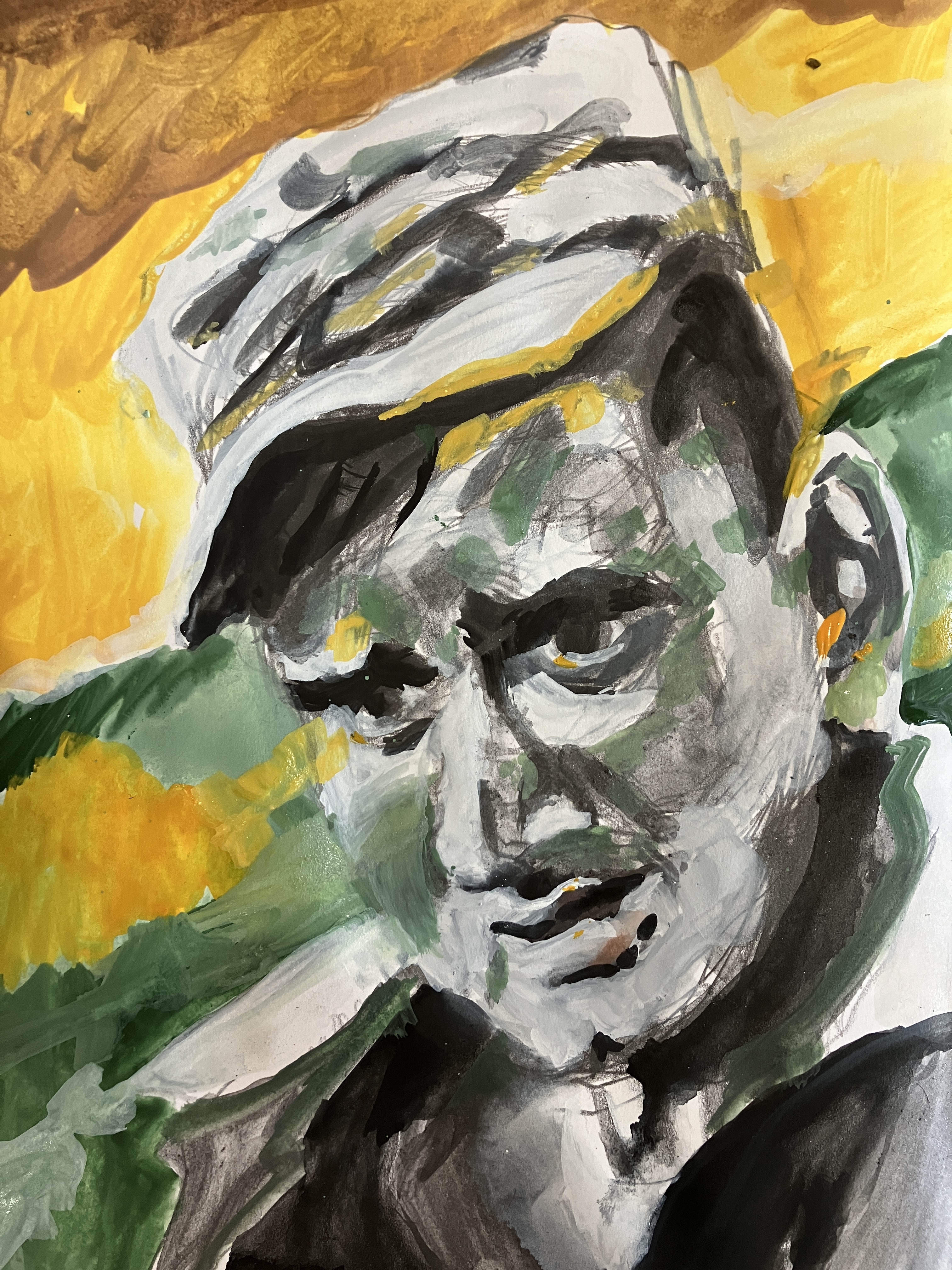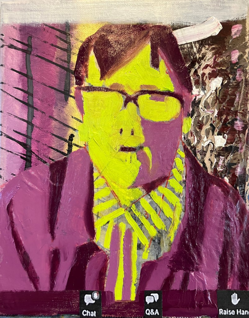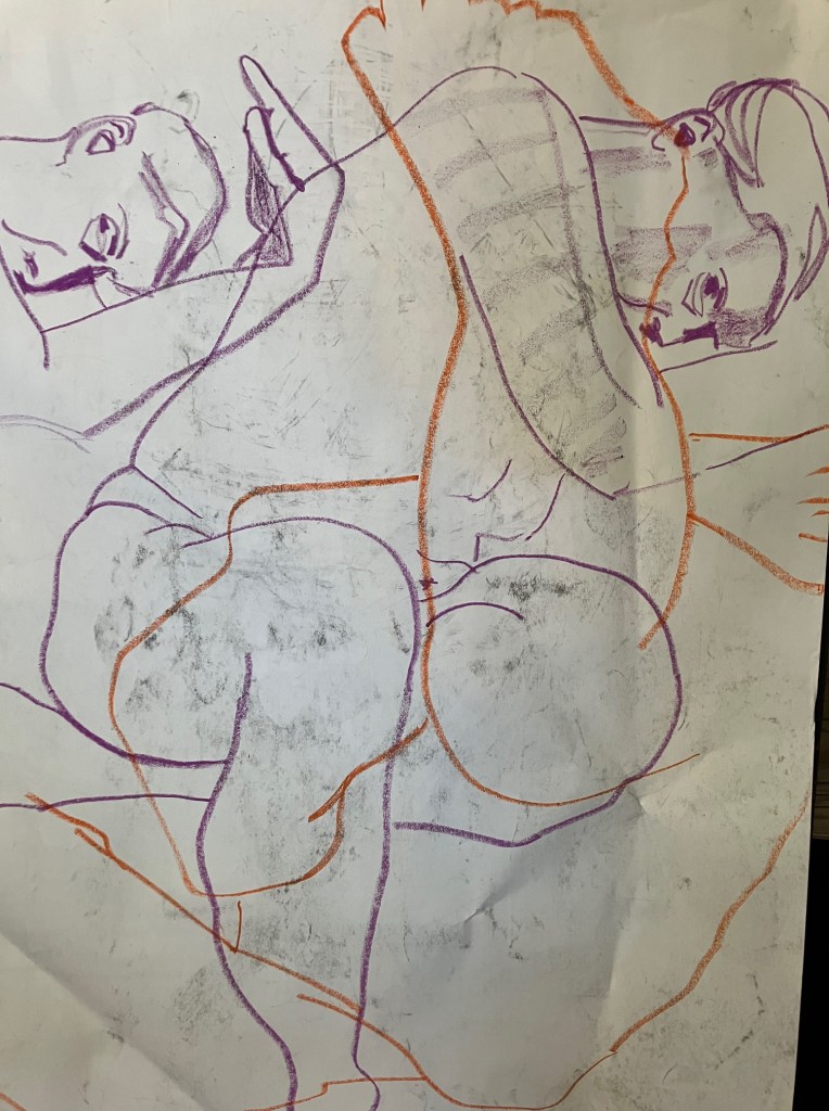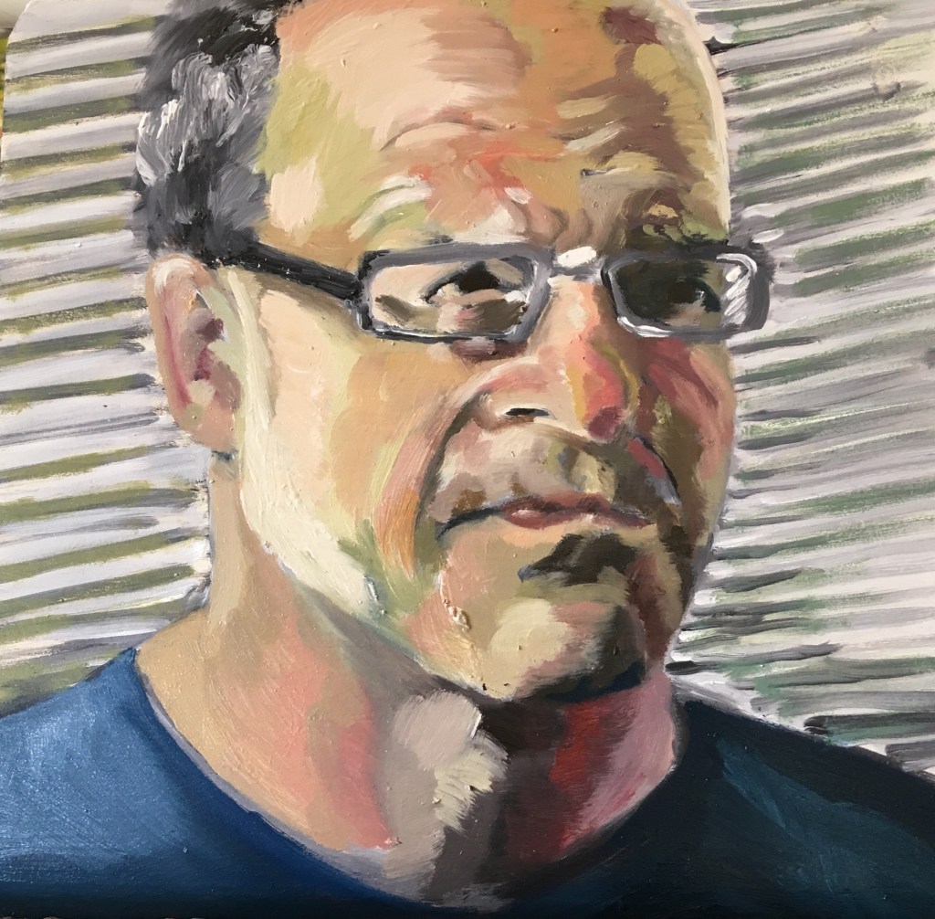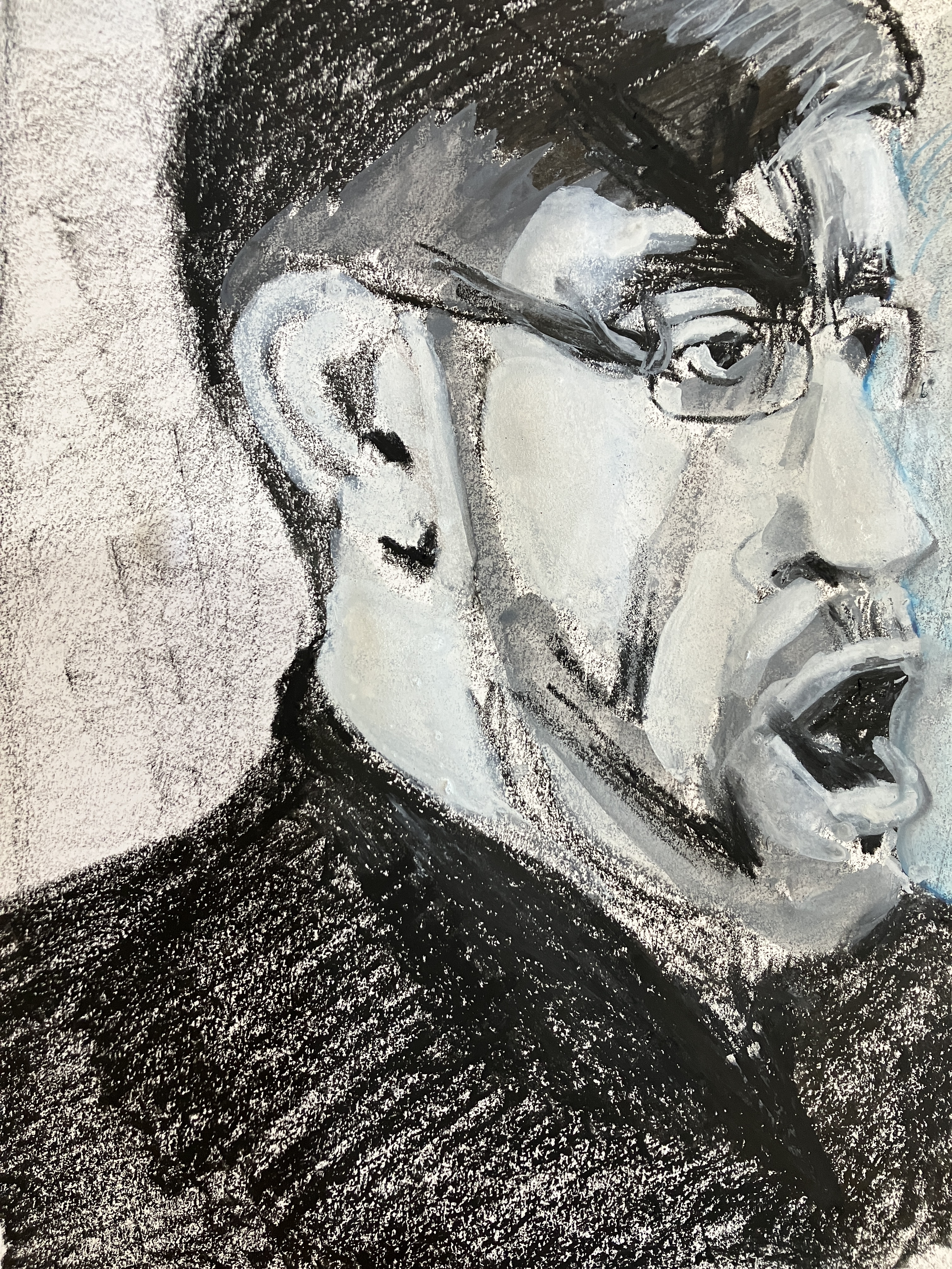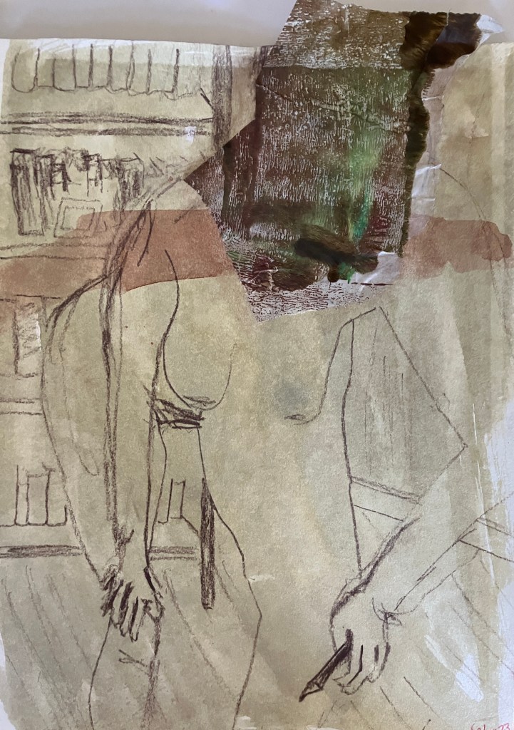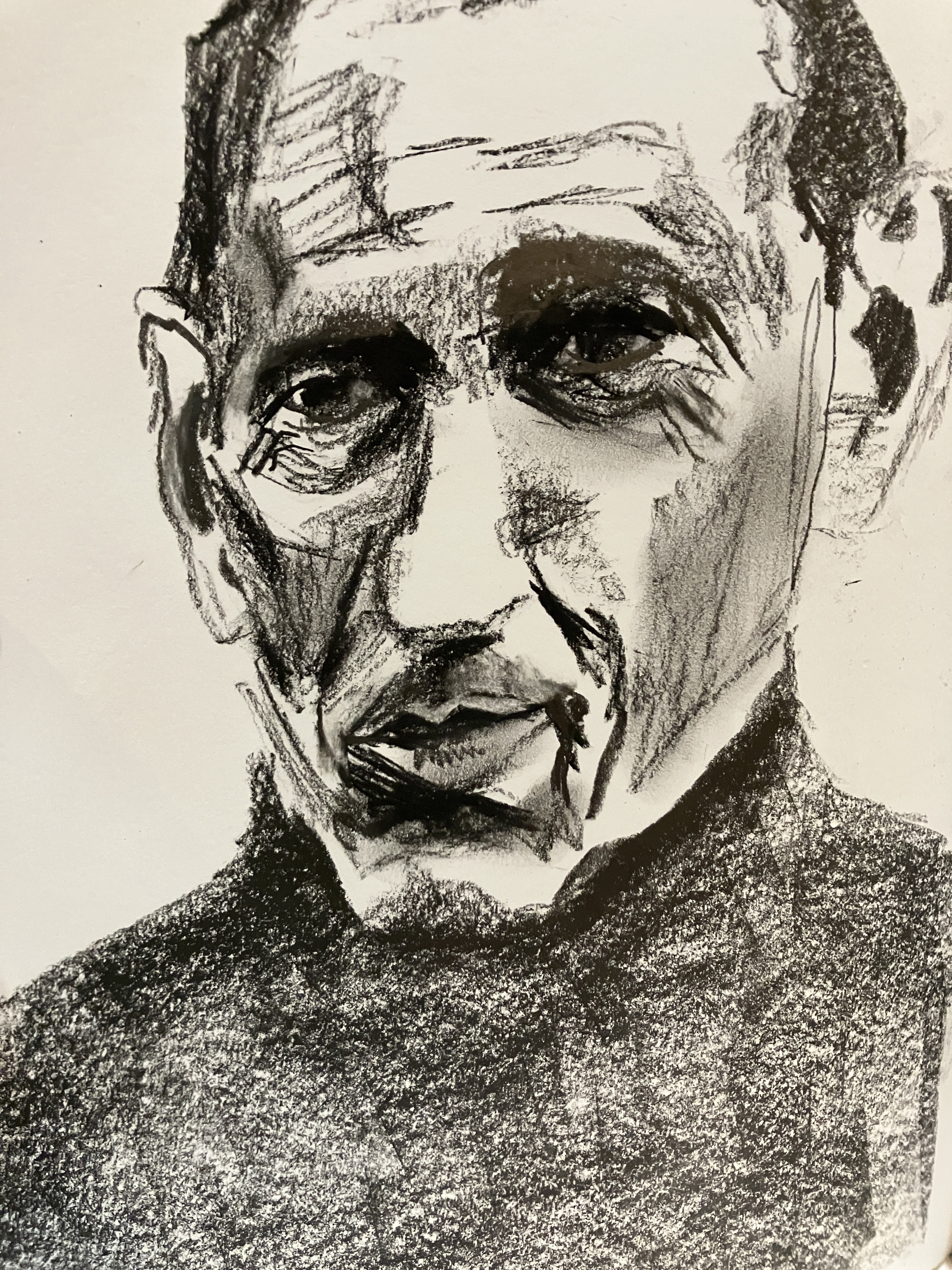Compressed #2. Before (left, 12/2022). After (right, 11/2023) Oil, 18.5×21″