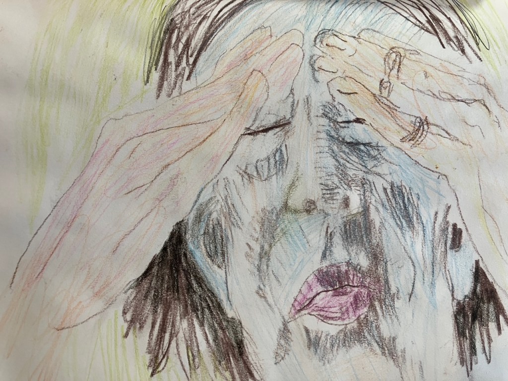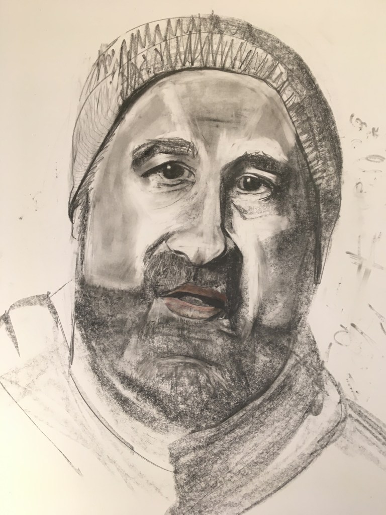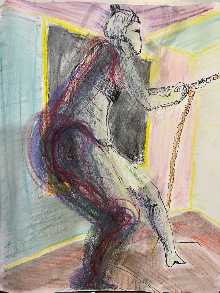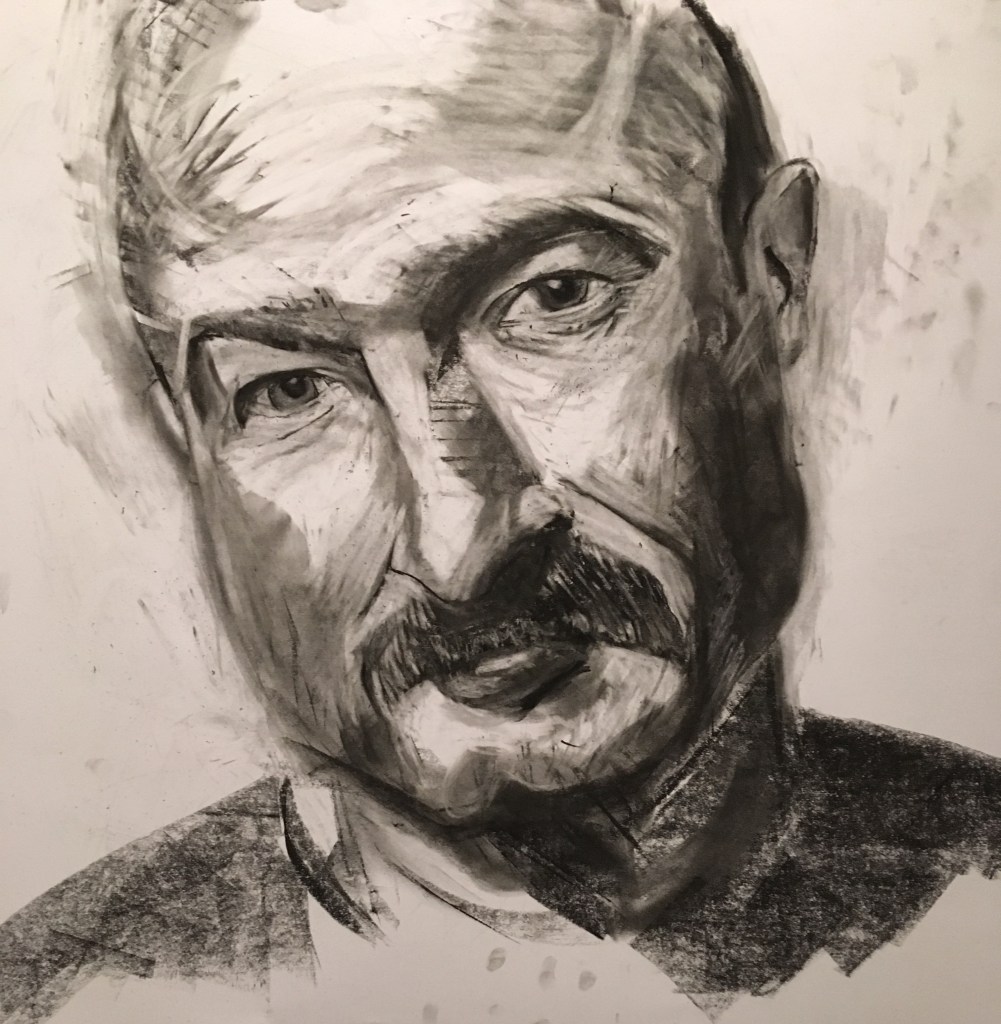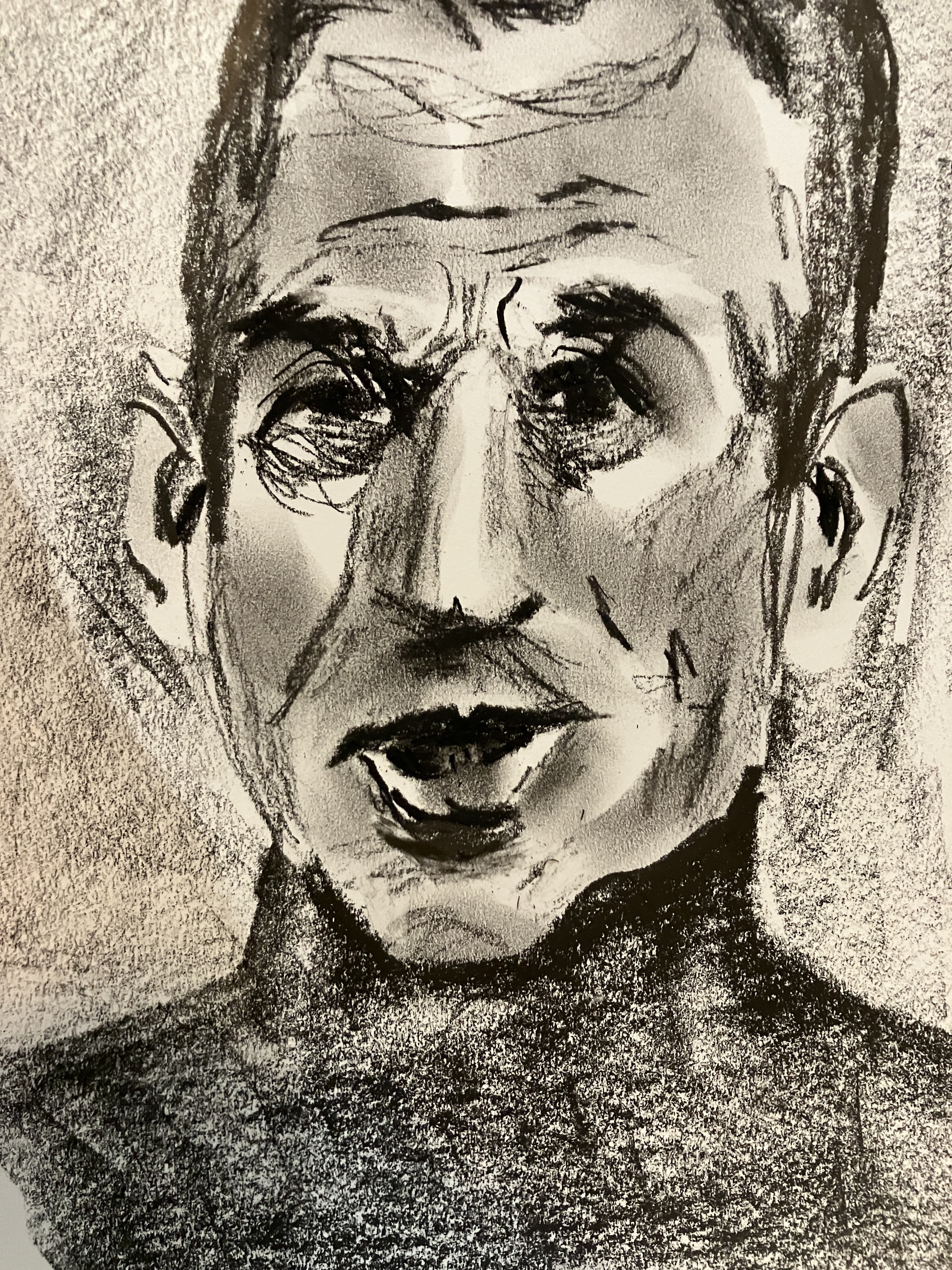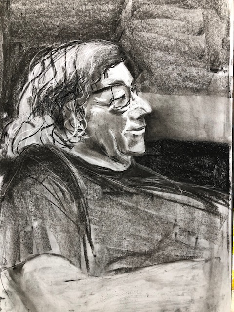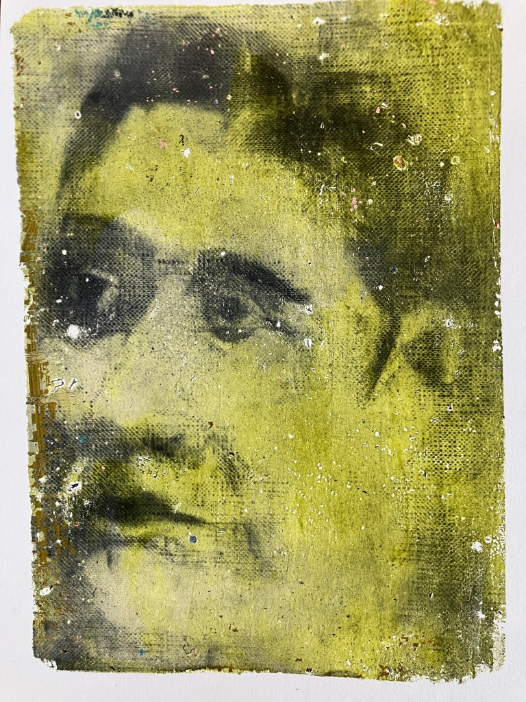 Compressed #2. Before (left, 12/2022). After (right, 11/2023) Oil, 18.5×21″