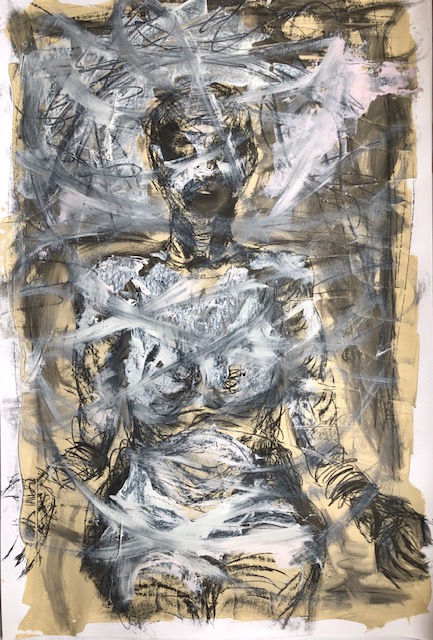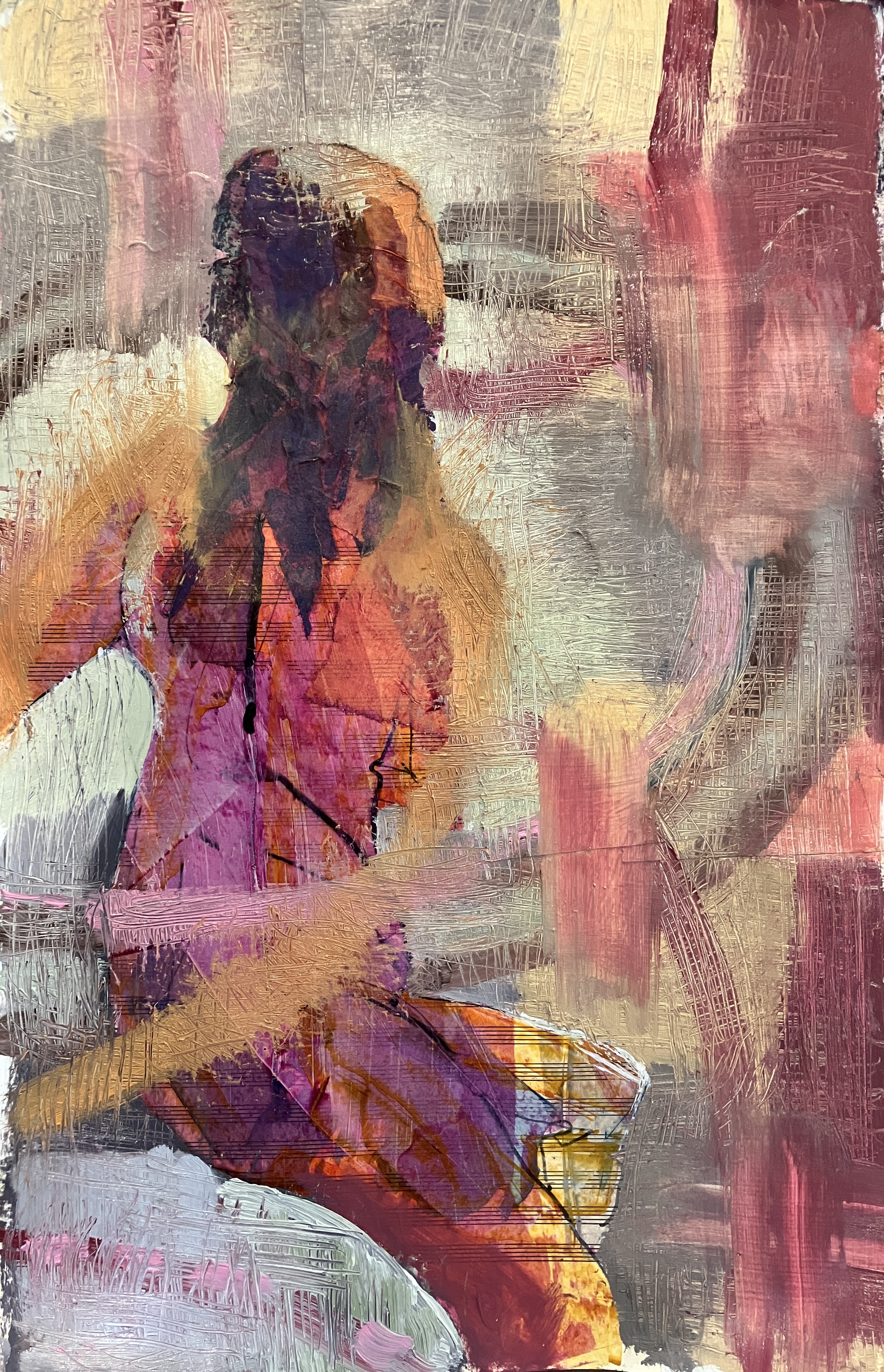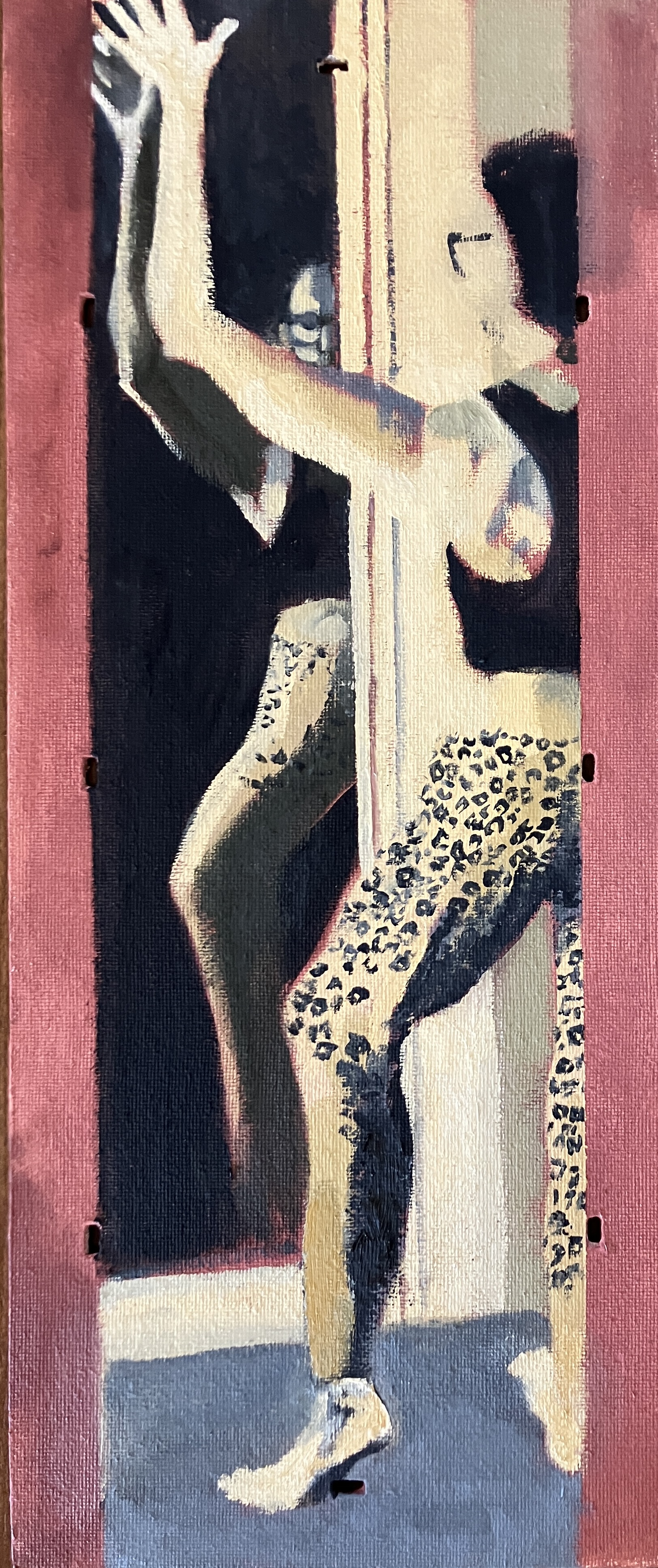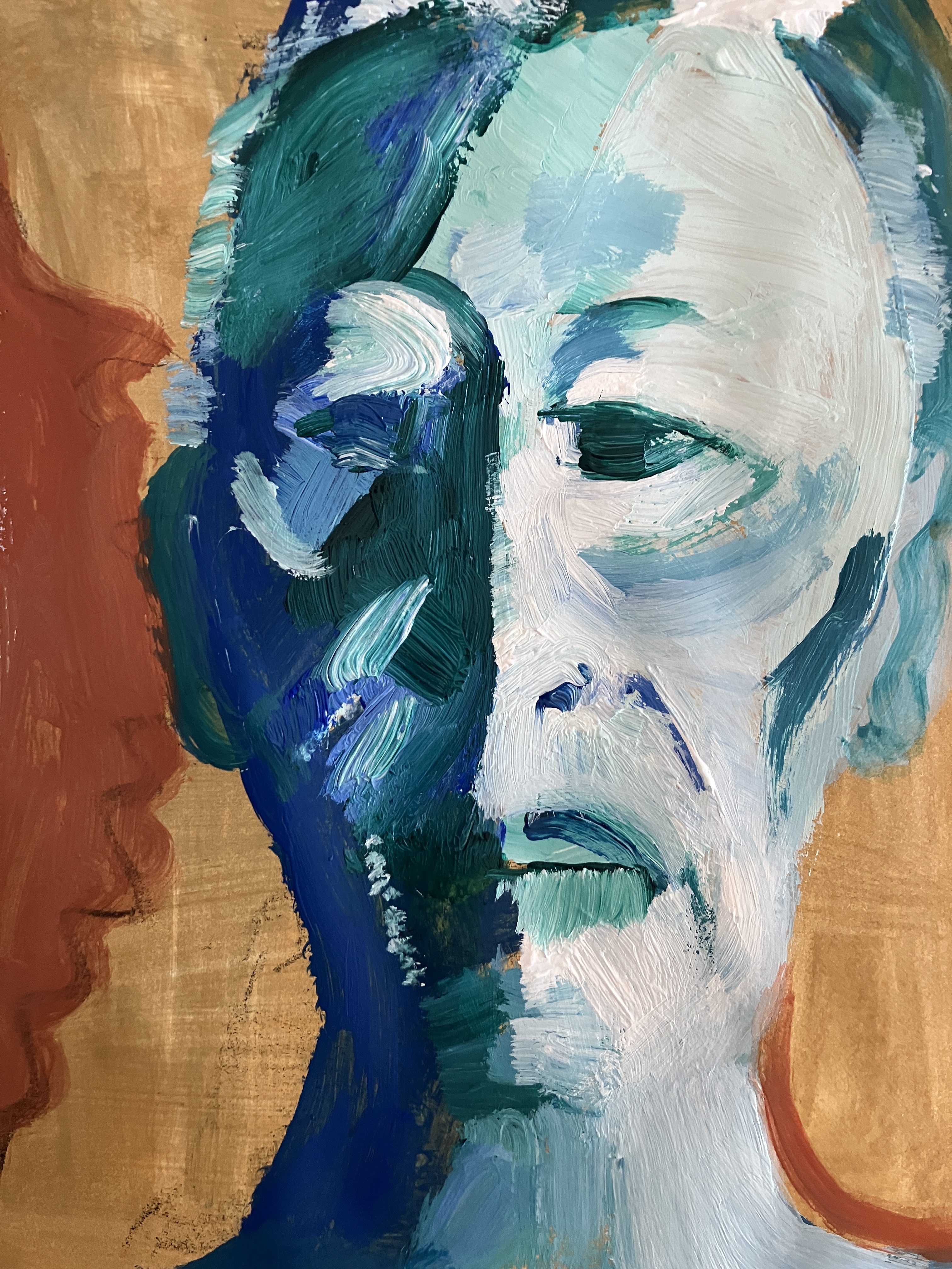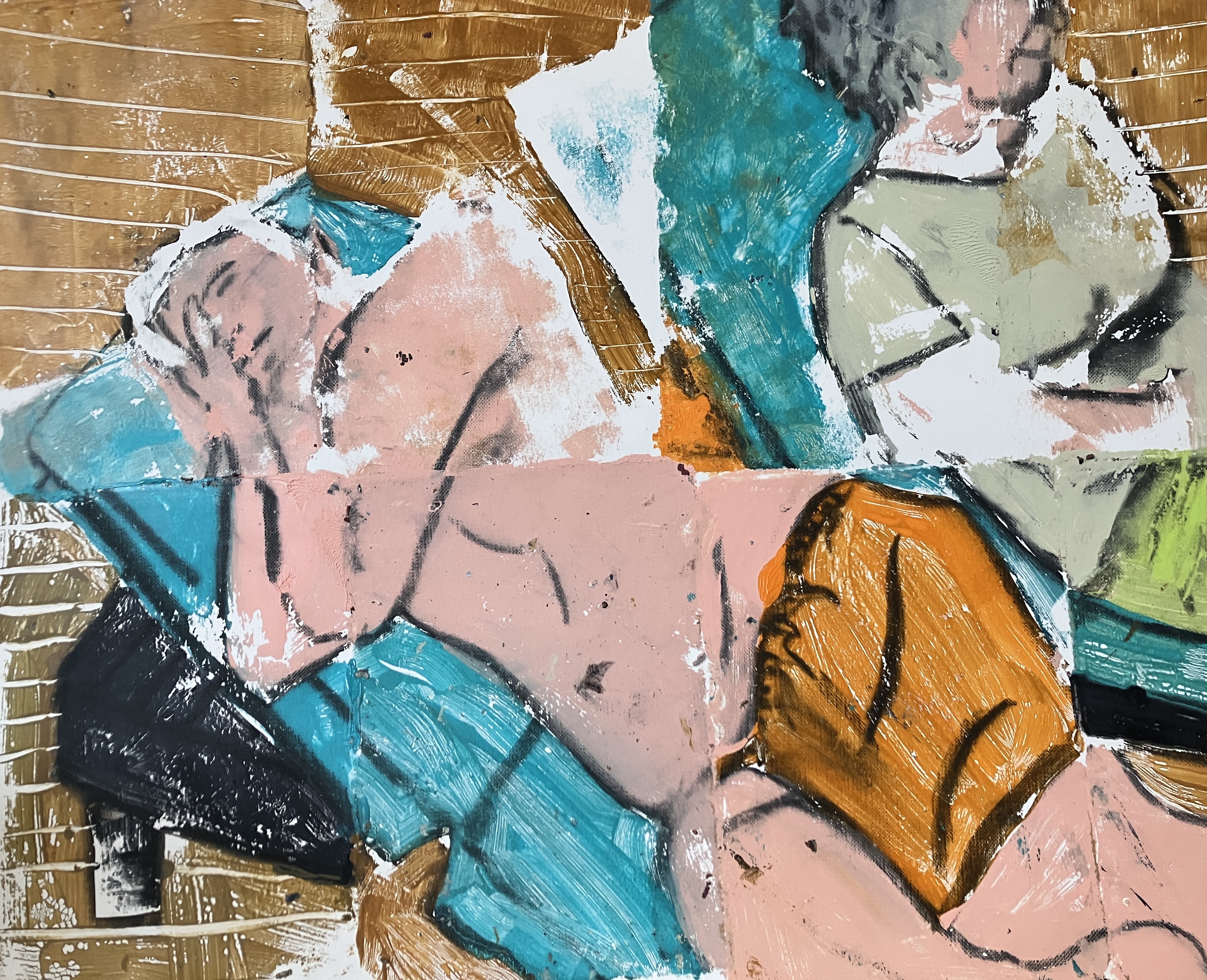 Compressed #2. Before (left, 12/2022). After (right, 11/2023) Oil, 18.5×21″