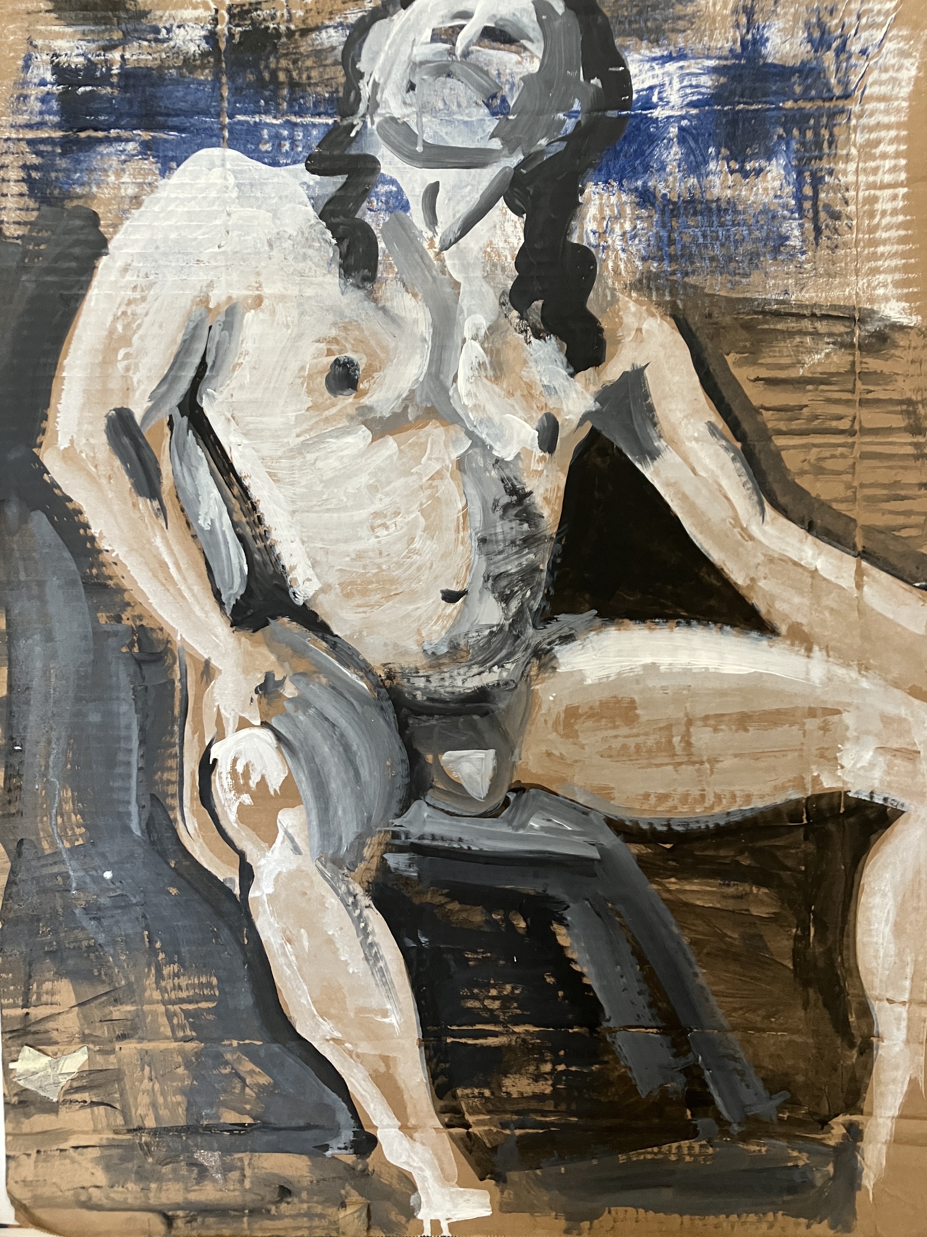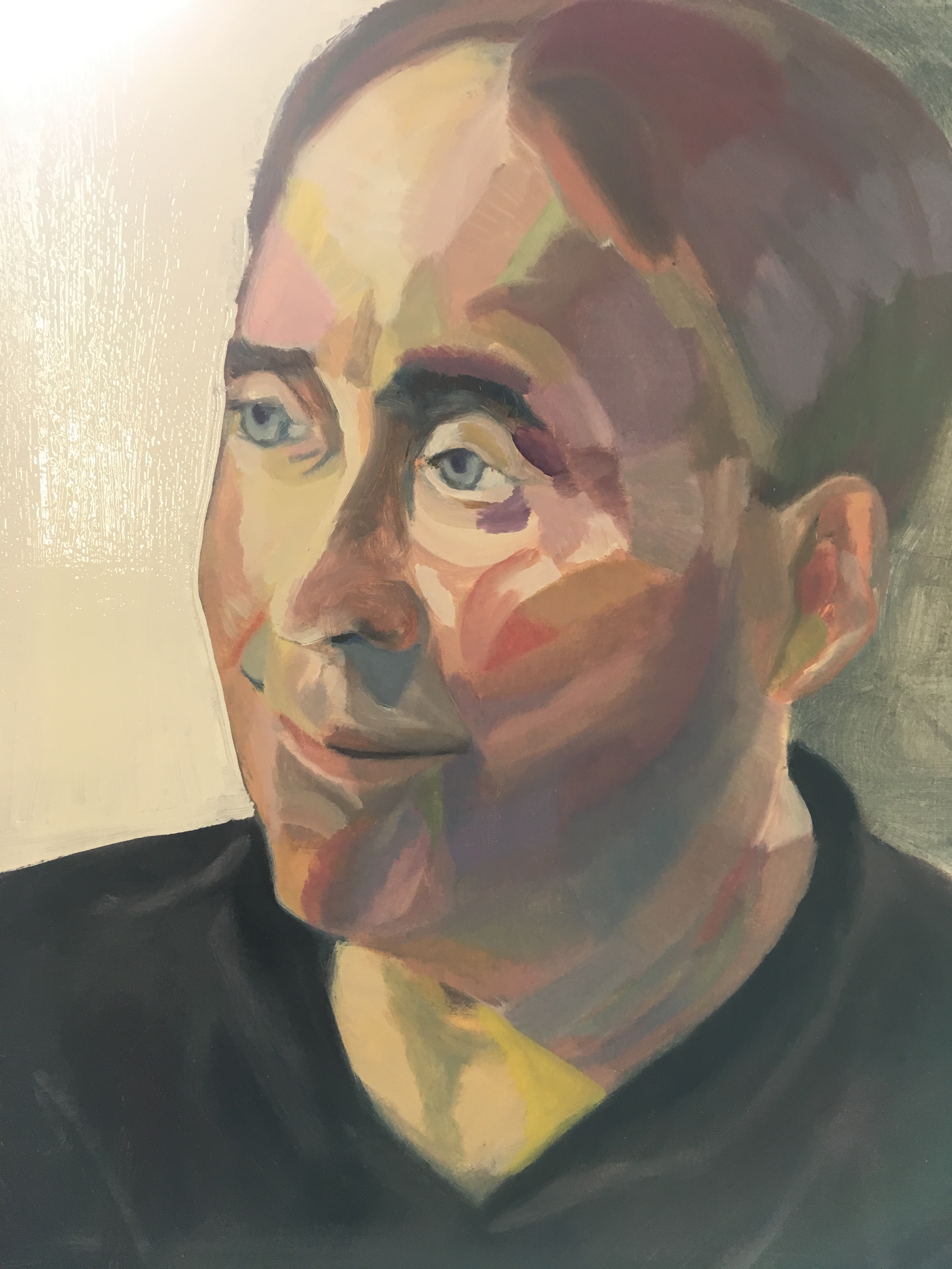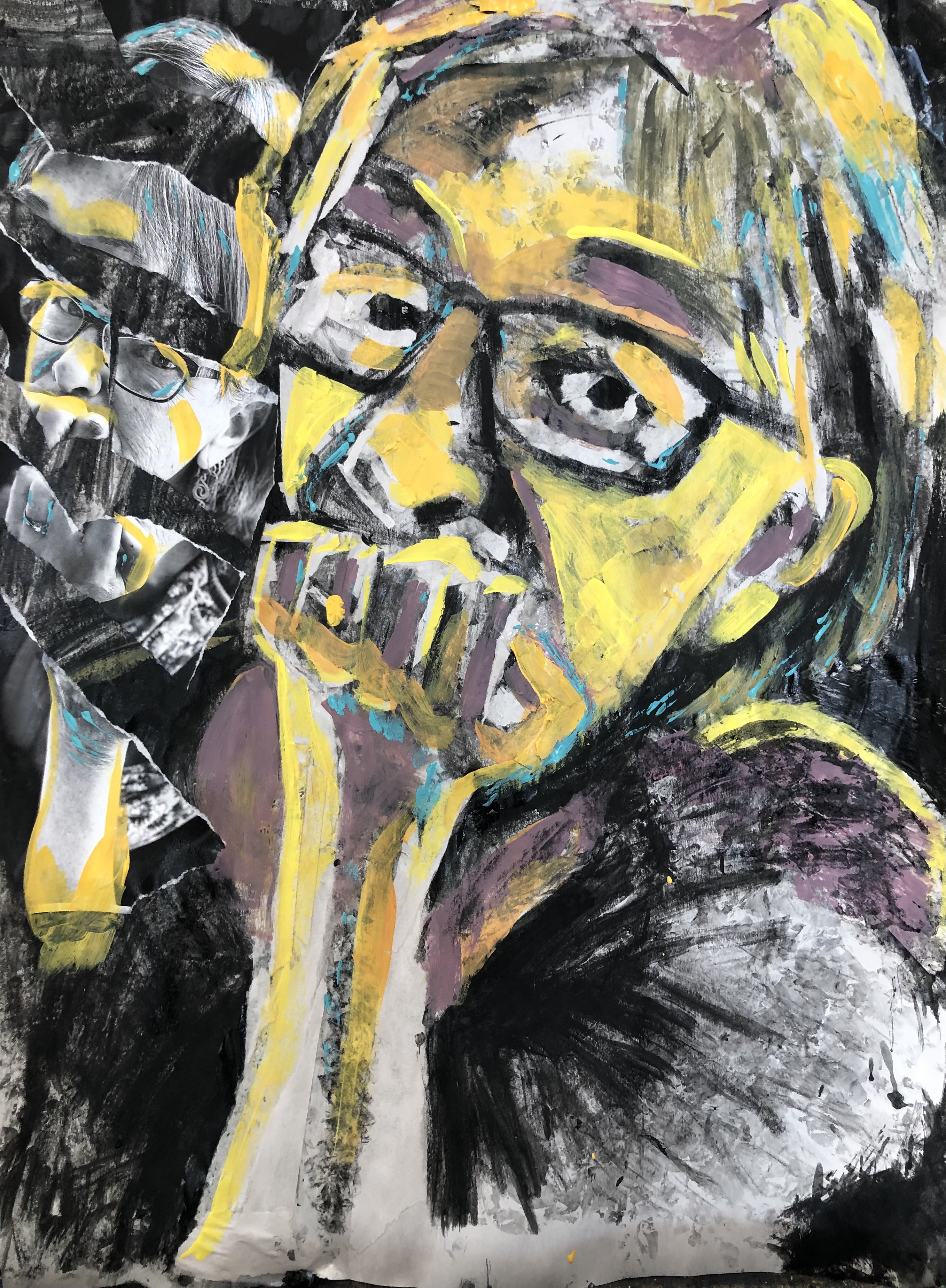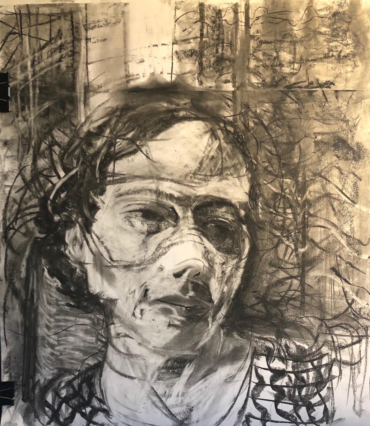 Compressed #2. Before (left, 12/2022). After (right, 11/2023) Oil, 18.5×21″