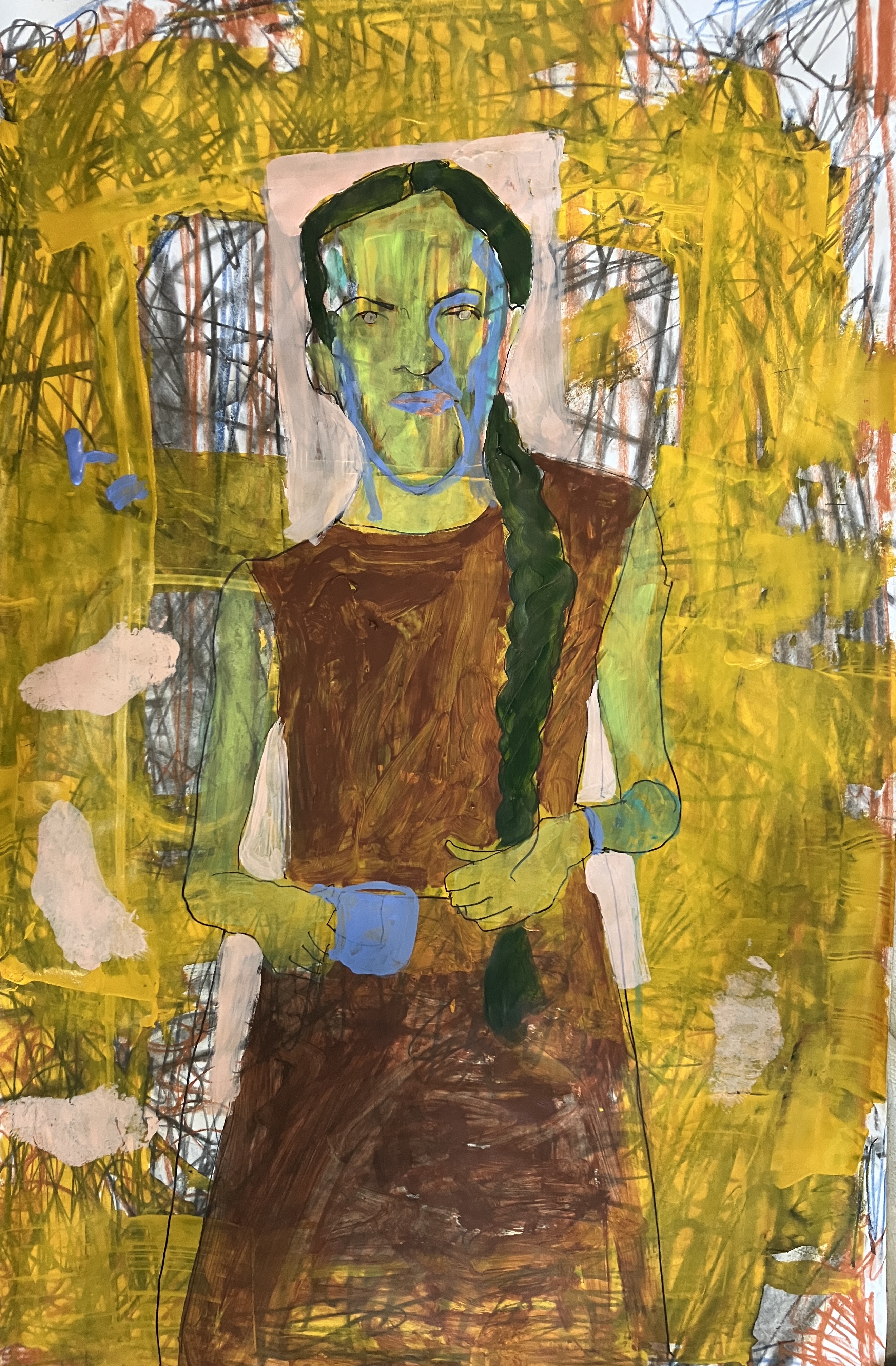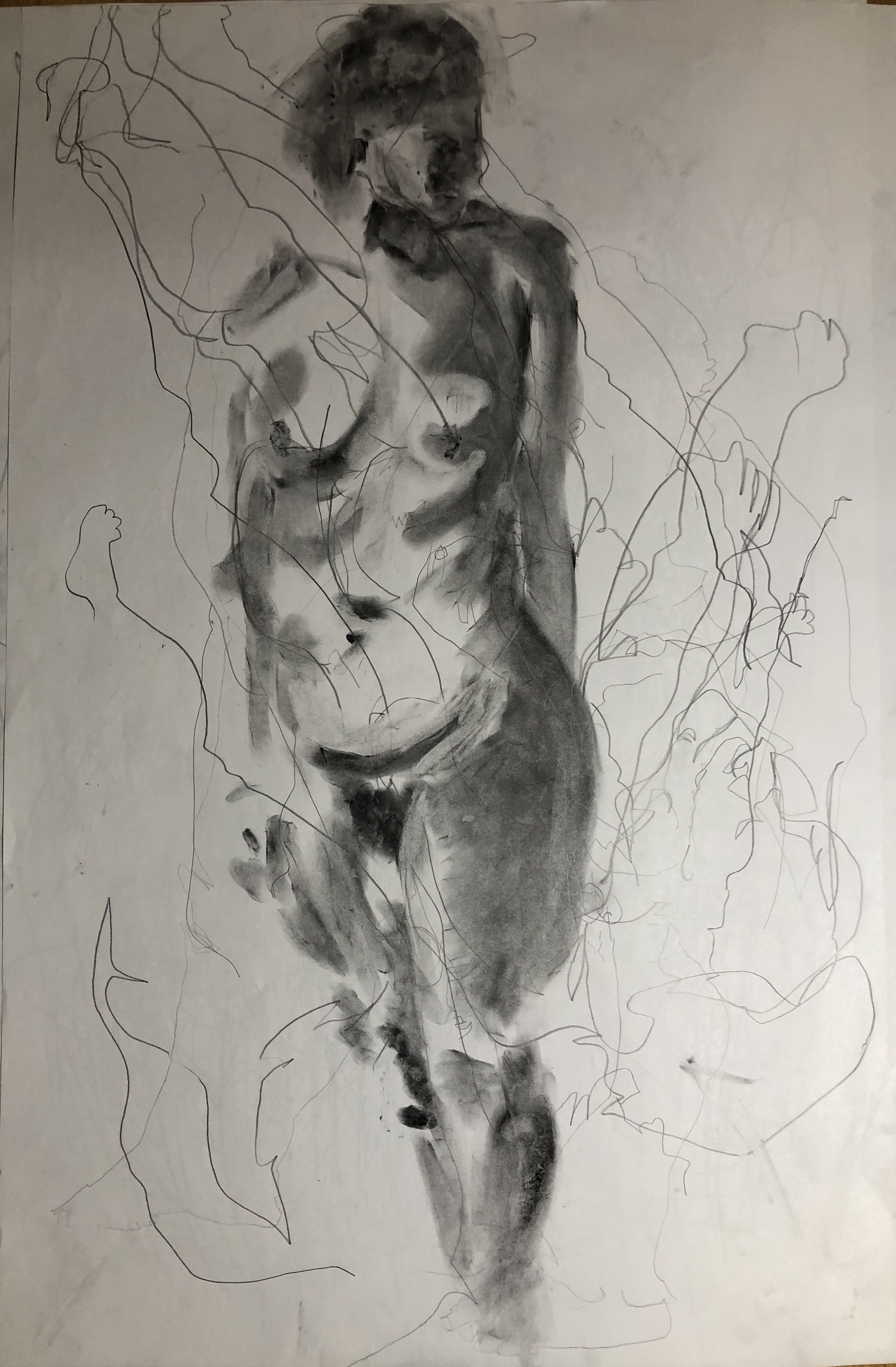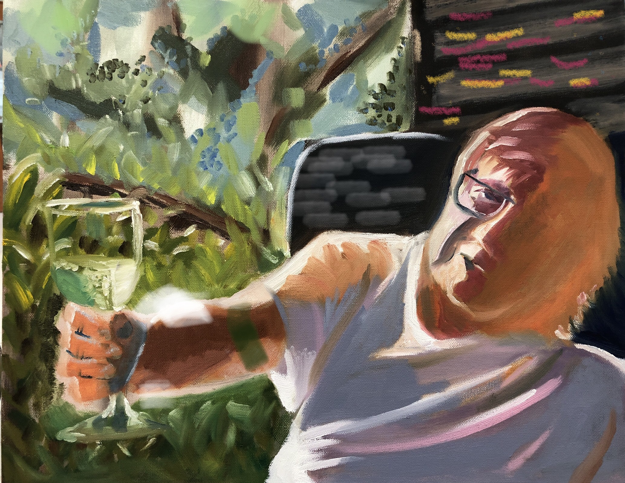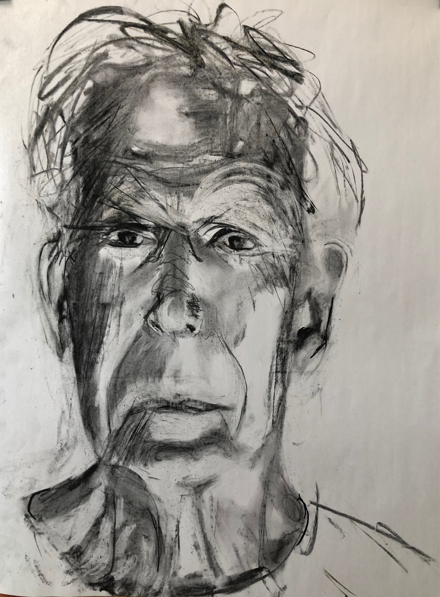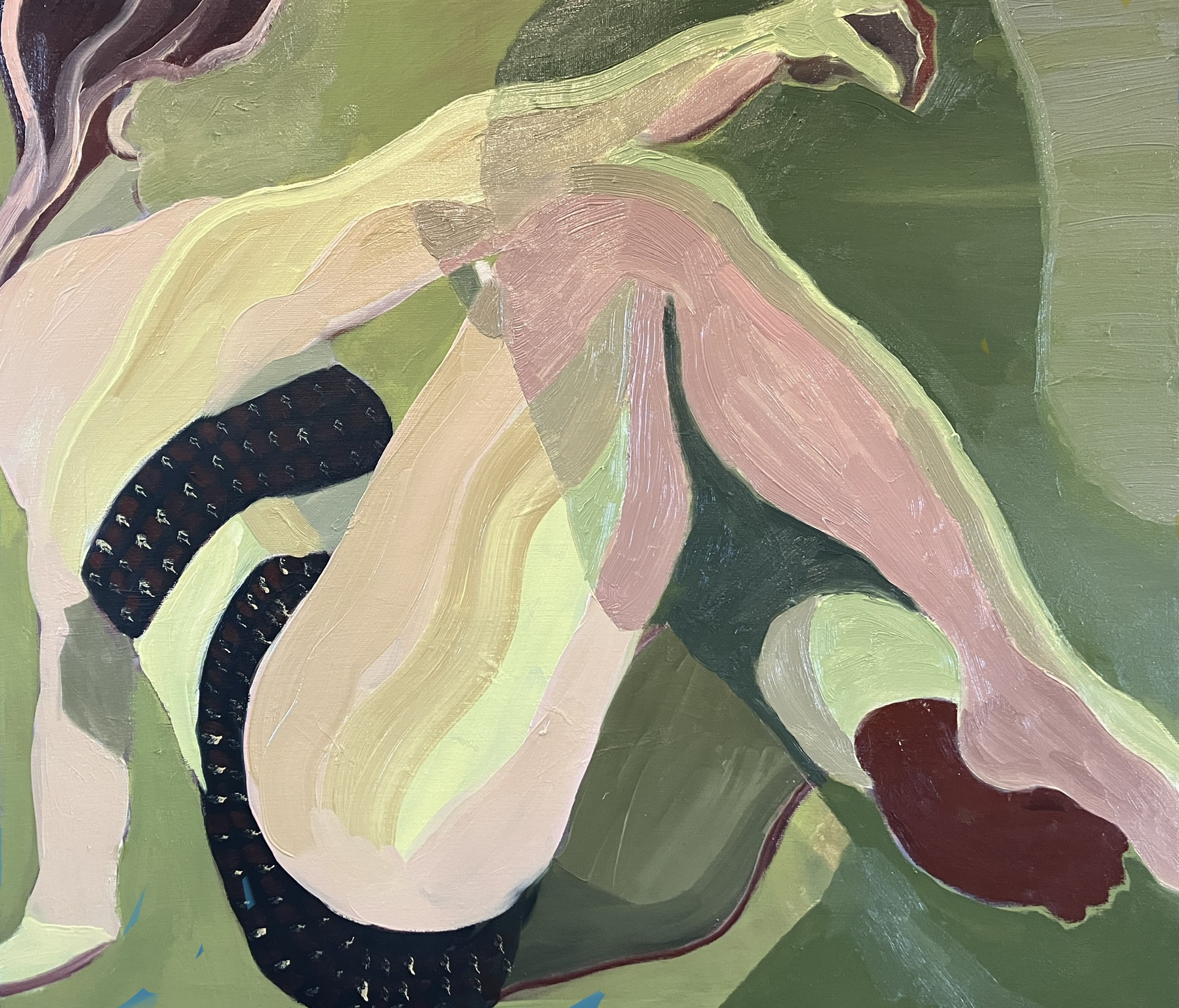 Compressed #2. Before (left, 12/2022). After (right, 11/2023) Oil, 18.5×21″
