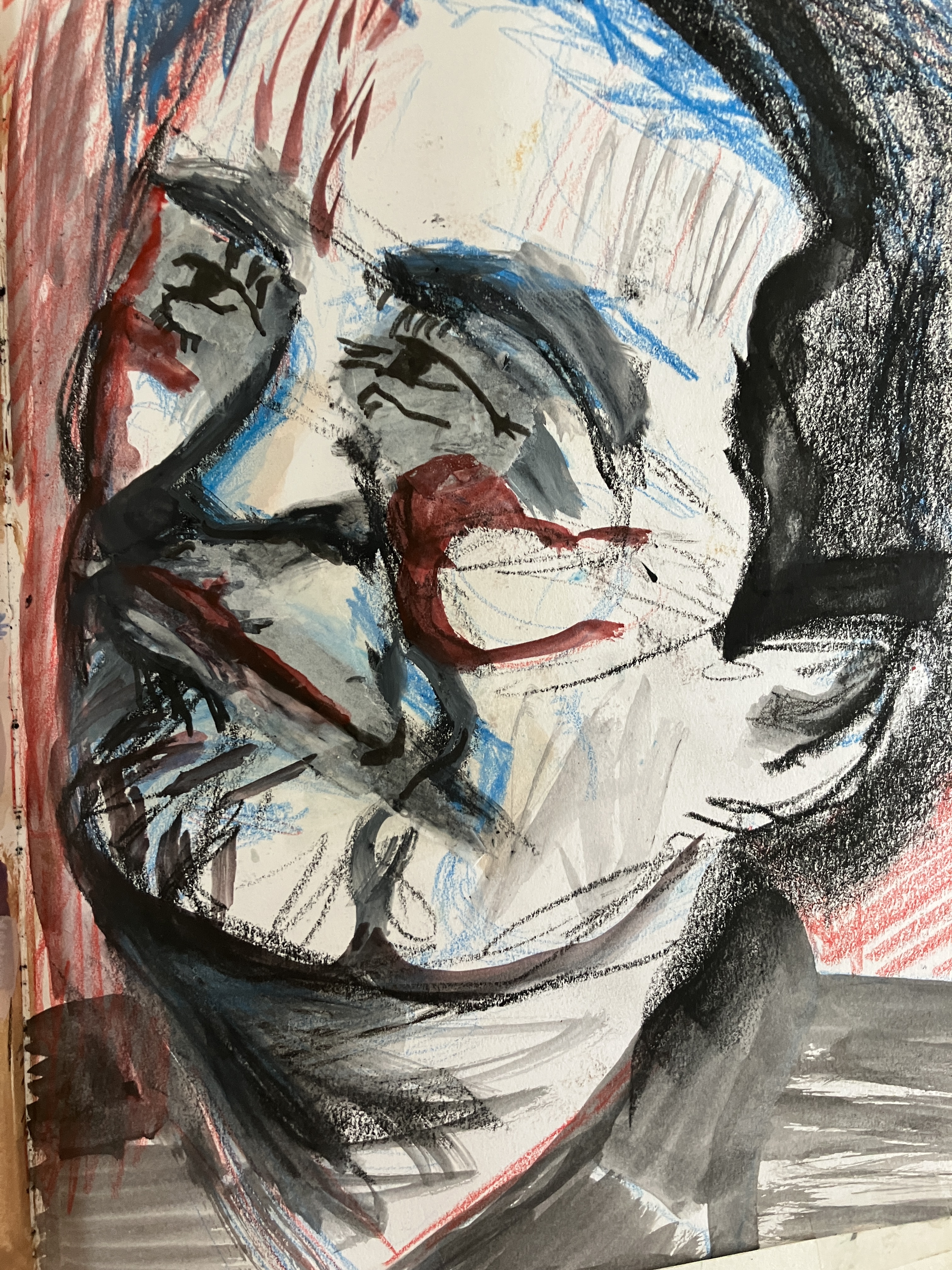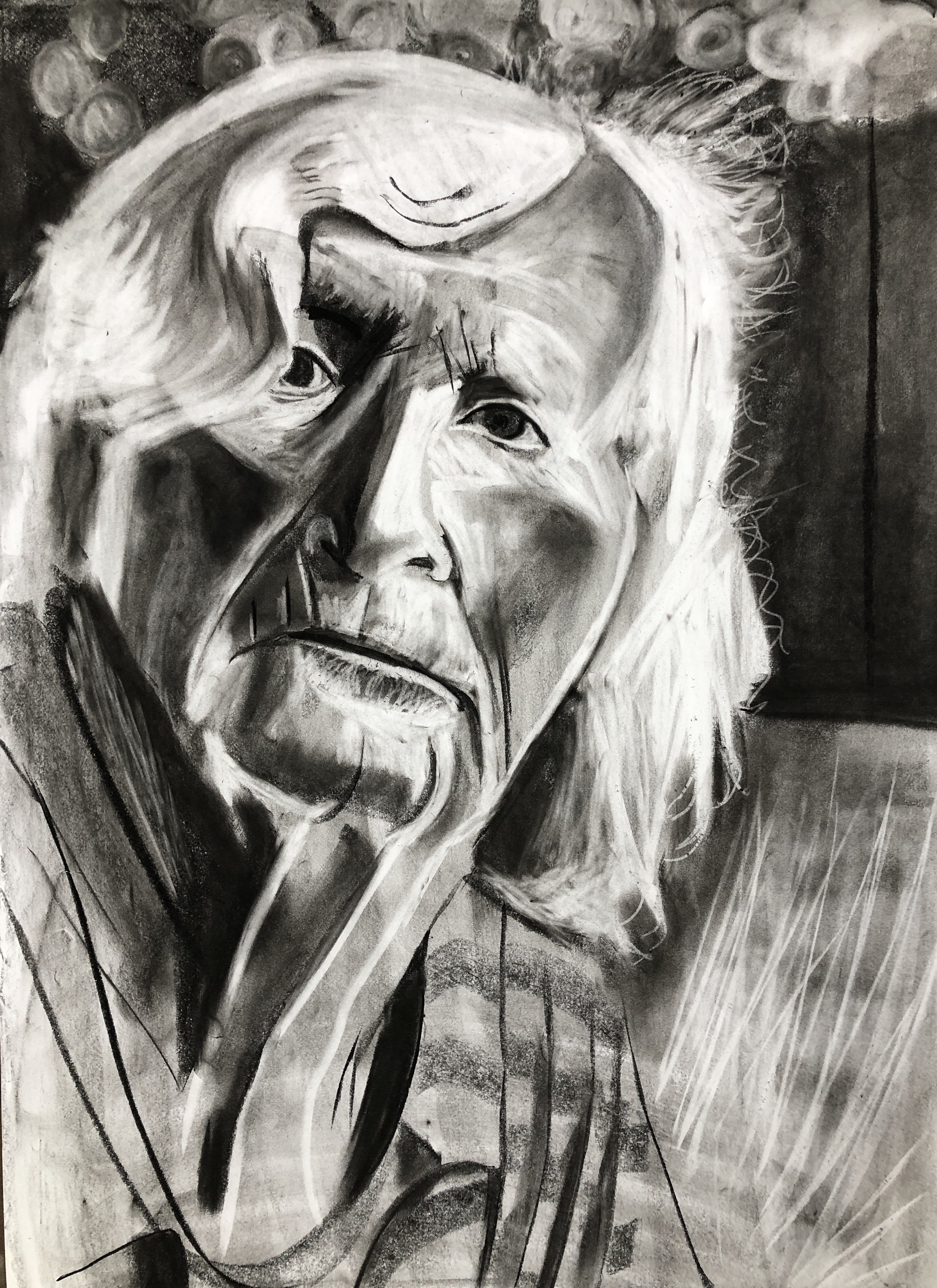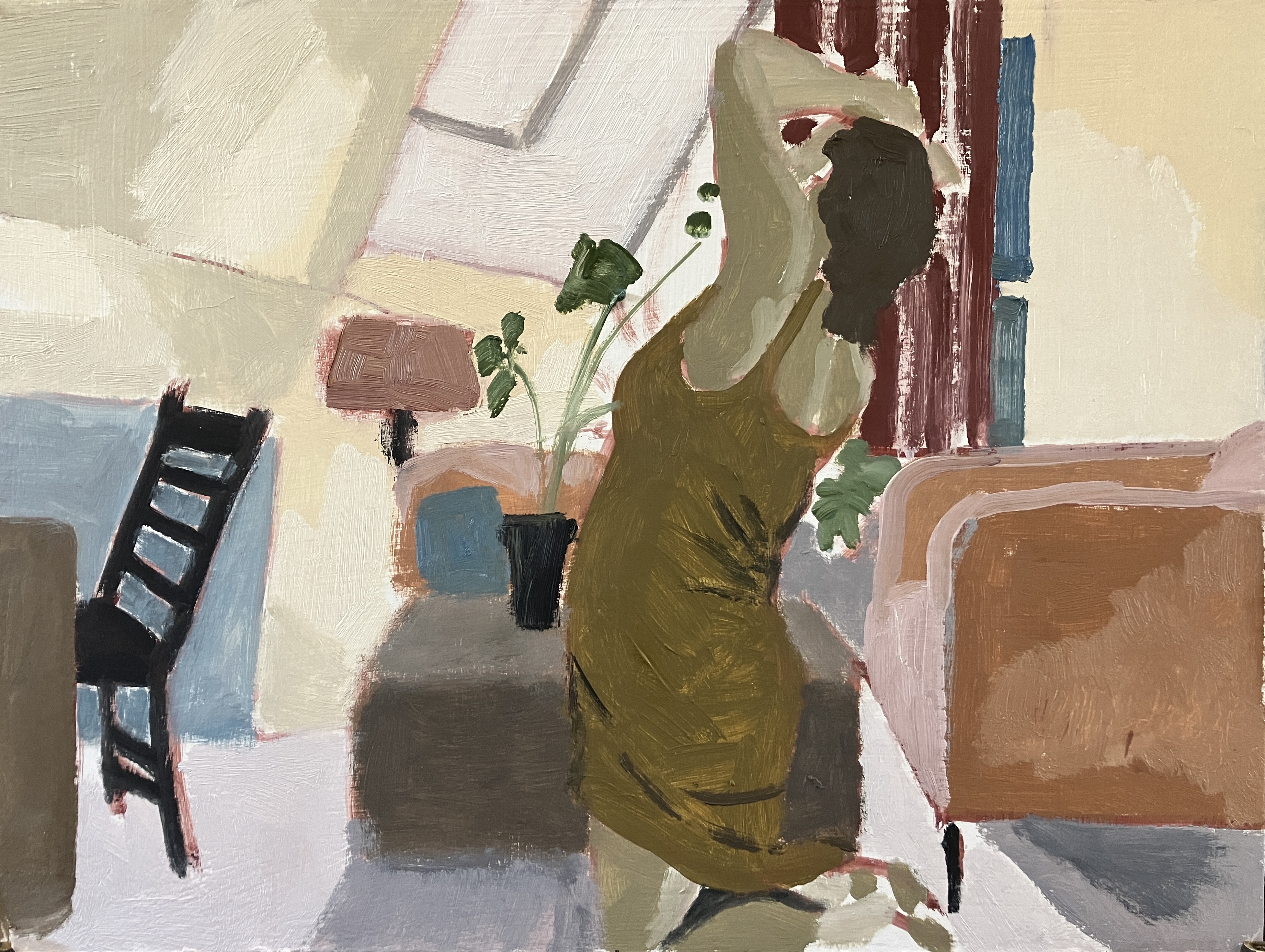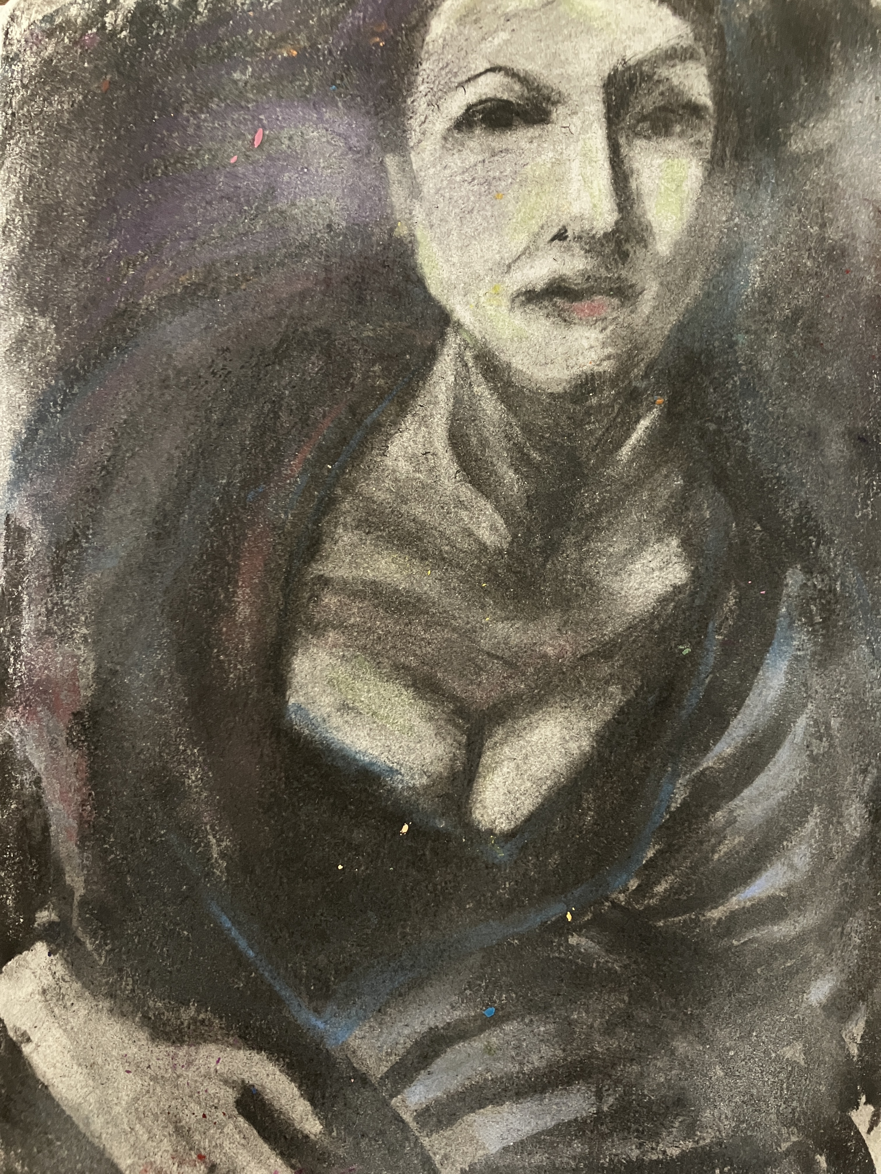 Compressed #2. Before (left, 12/2022). After (right, 11/2023) Oil, 18.5×21″