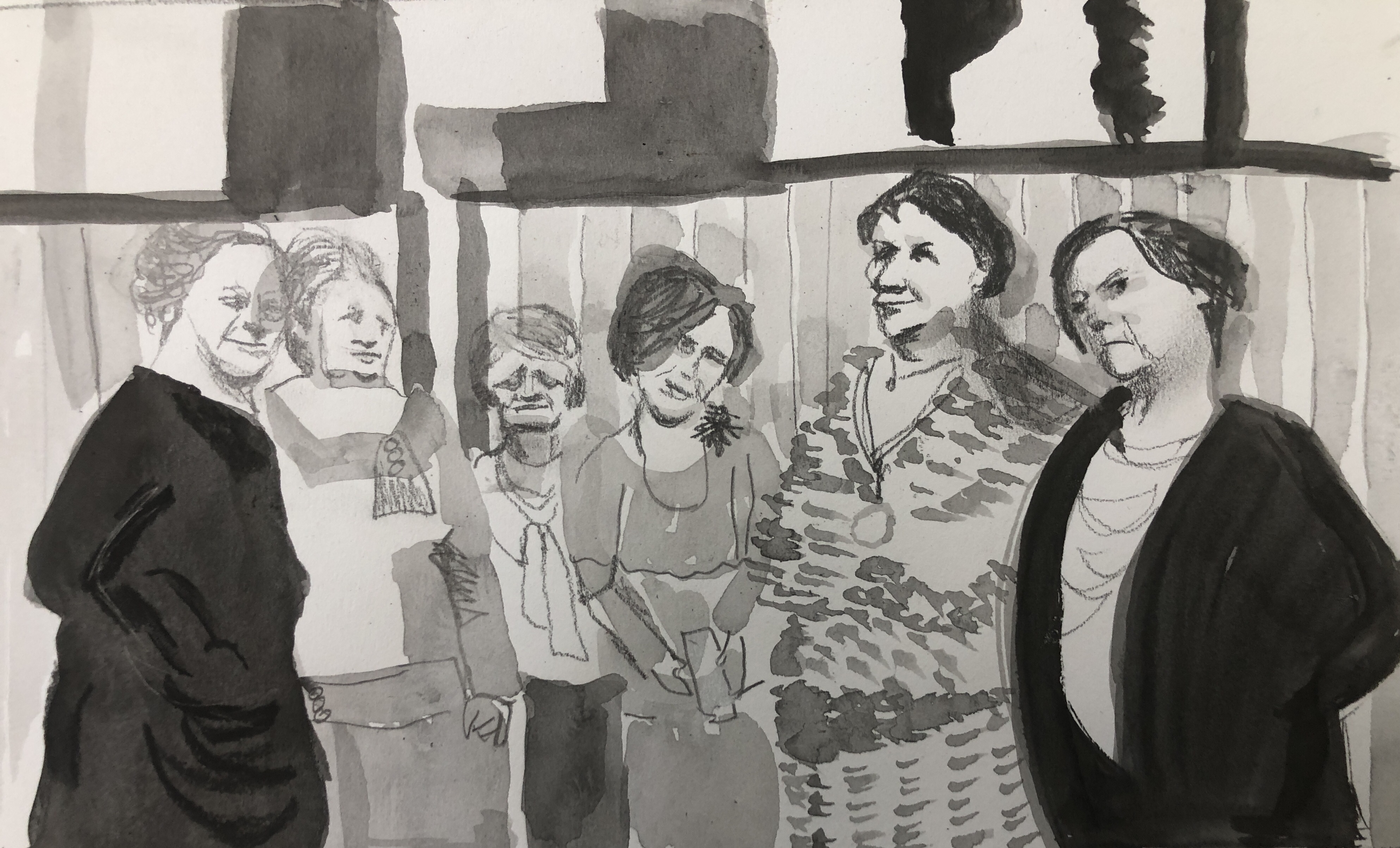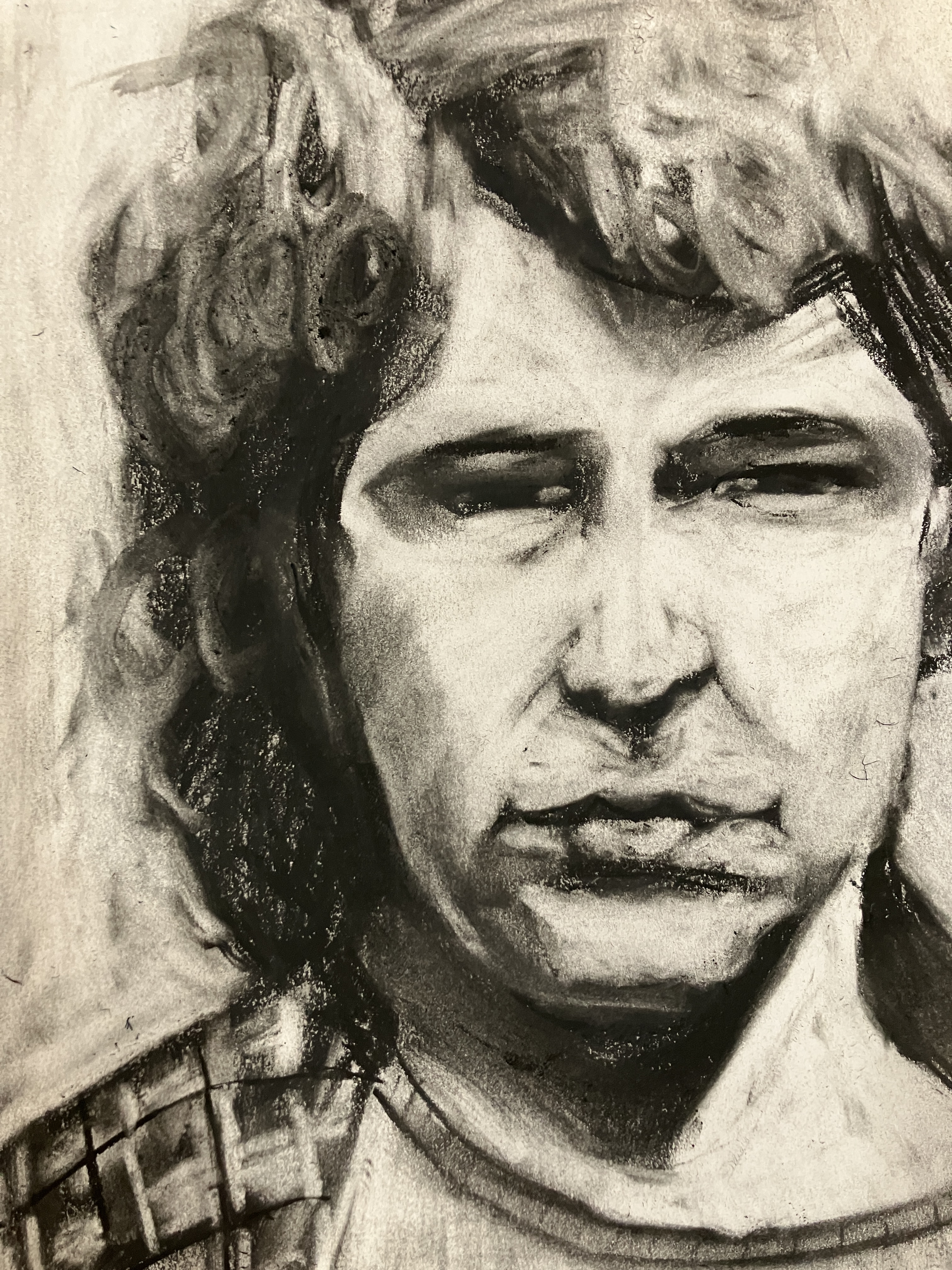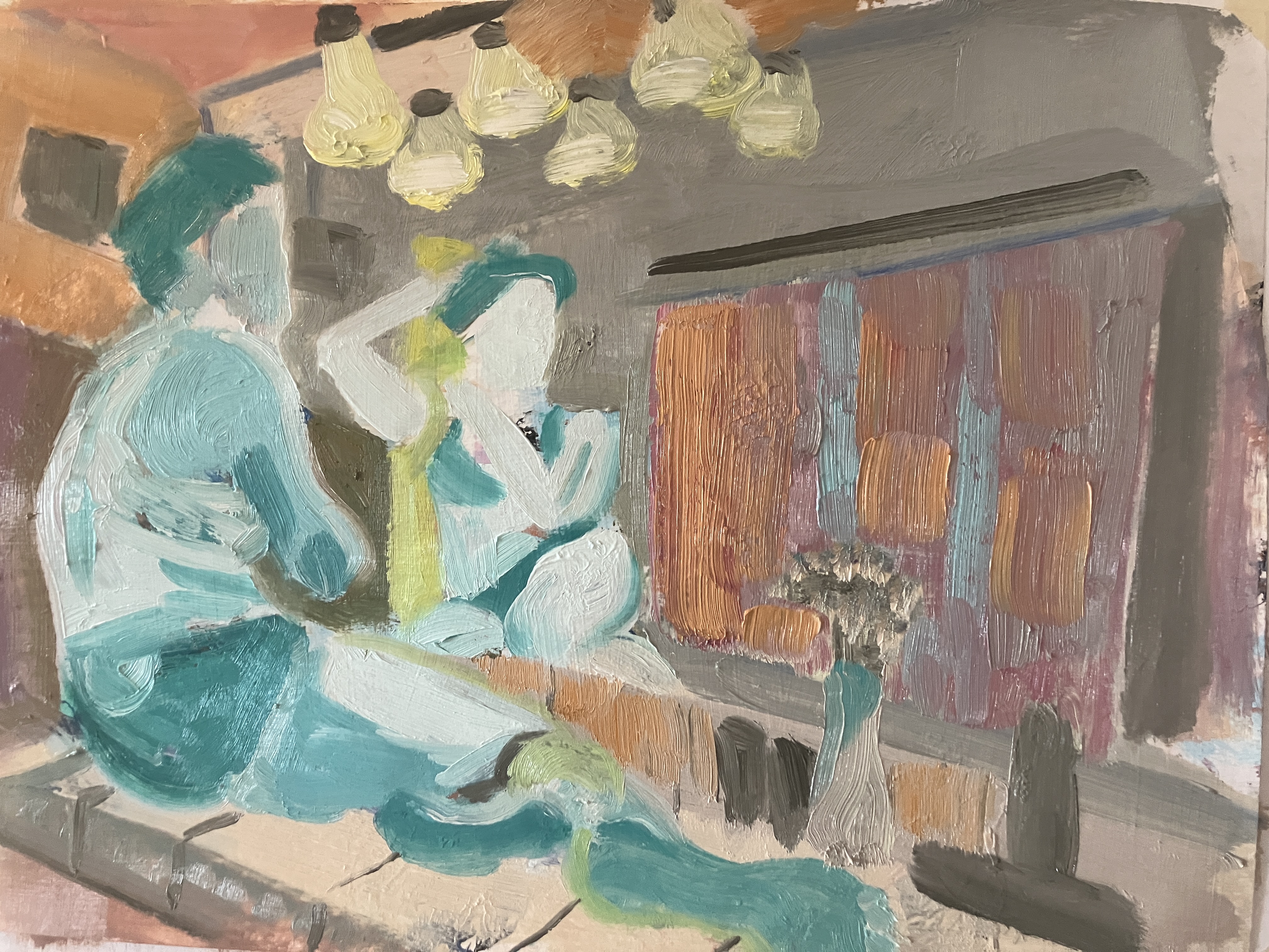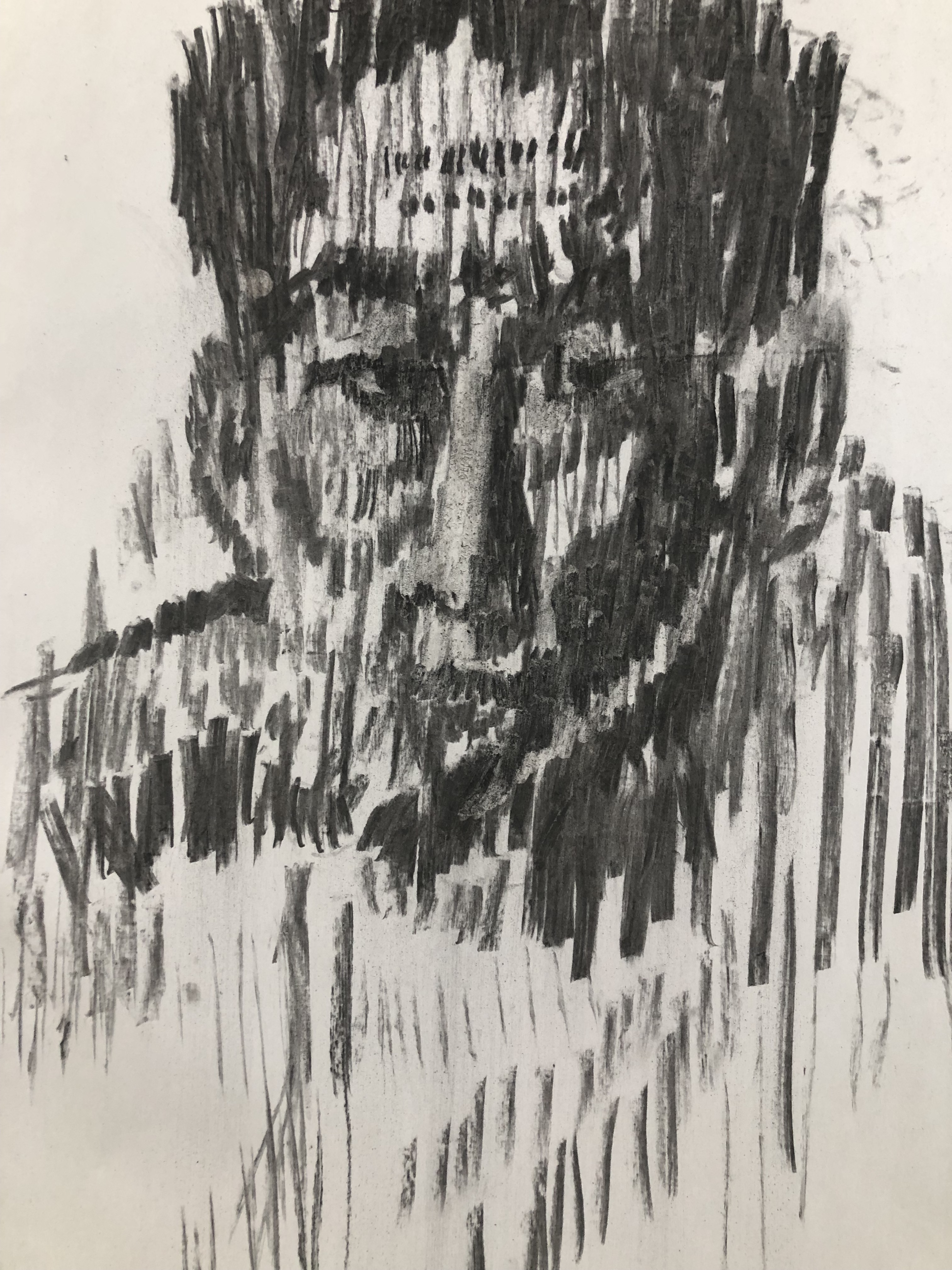 Compressed #2. Before (left, 12/2022). After (right, 11/2023) Oil, 18.5×21″